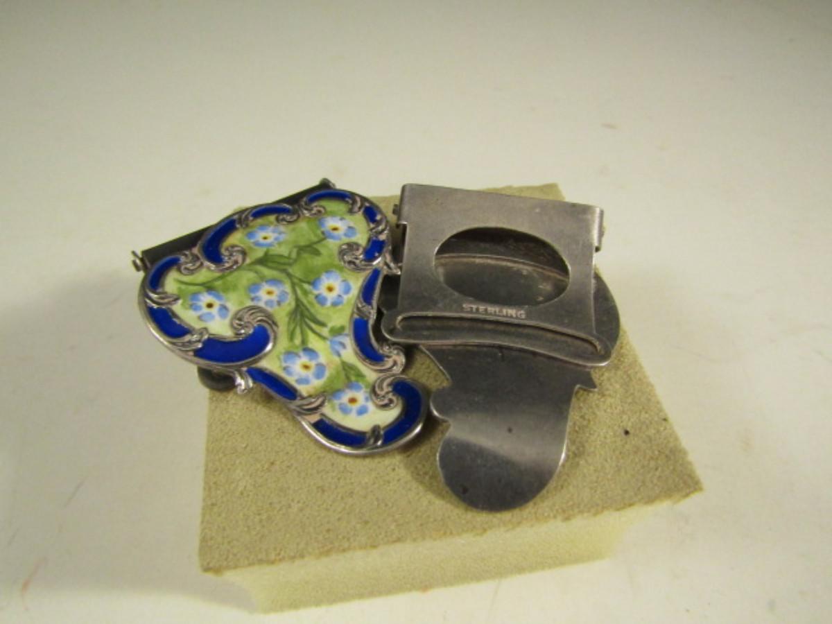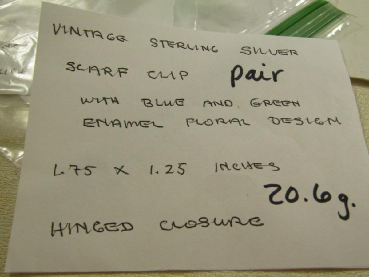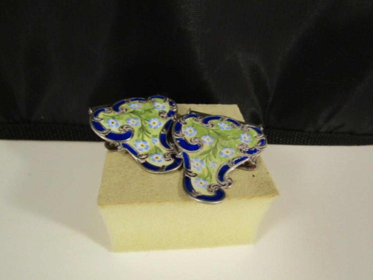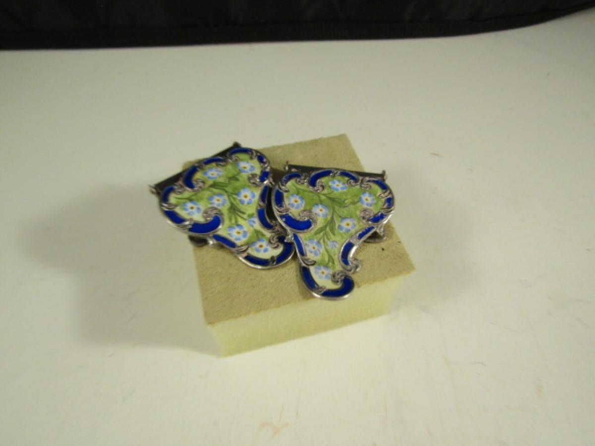 Pair of Enamel on Sterling Silver Scarf Clips- Approx 20.6 Grams (#16)