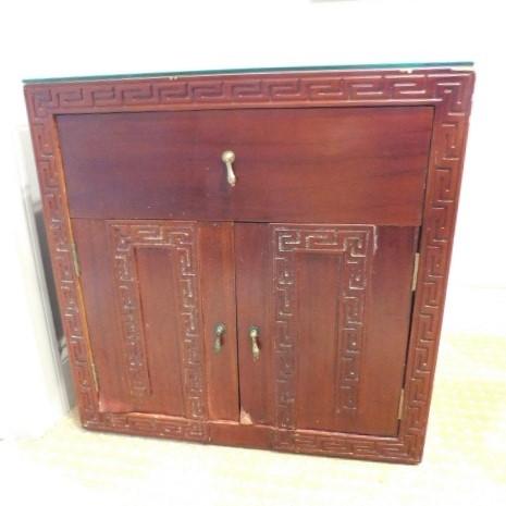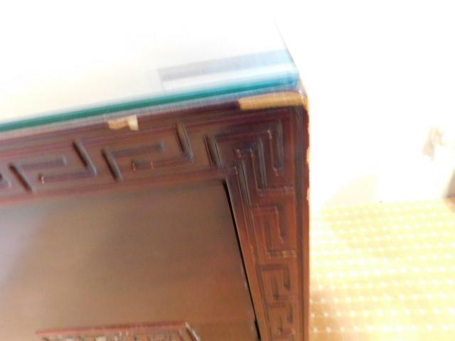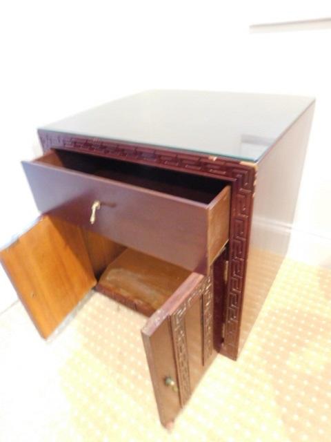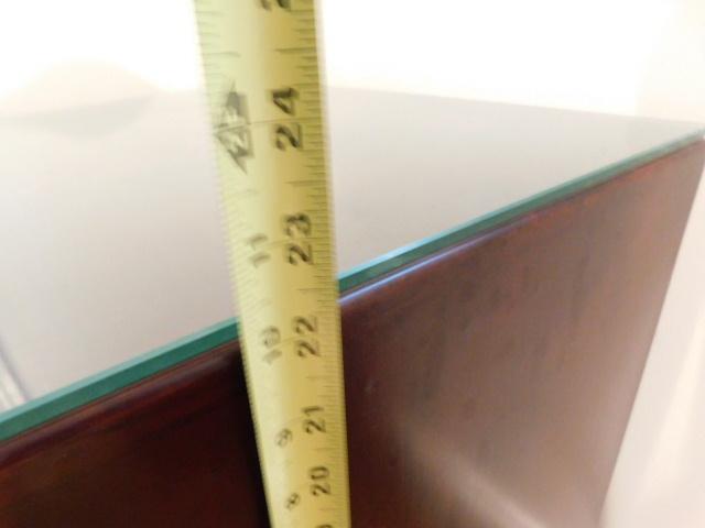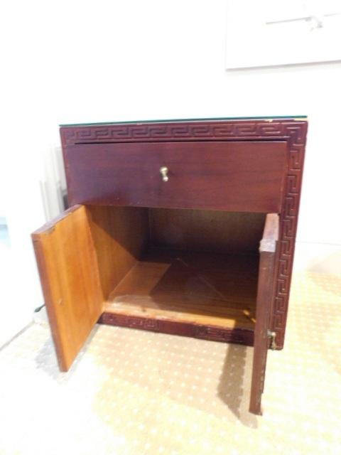 Pair of End Tables with Protective Glass 21"x19"x22" one table has some water damage to the front bottom as shown