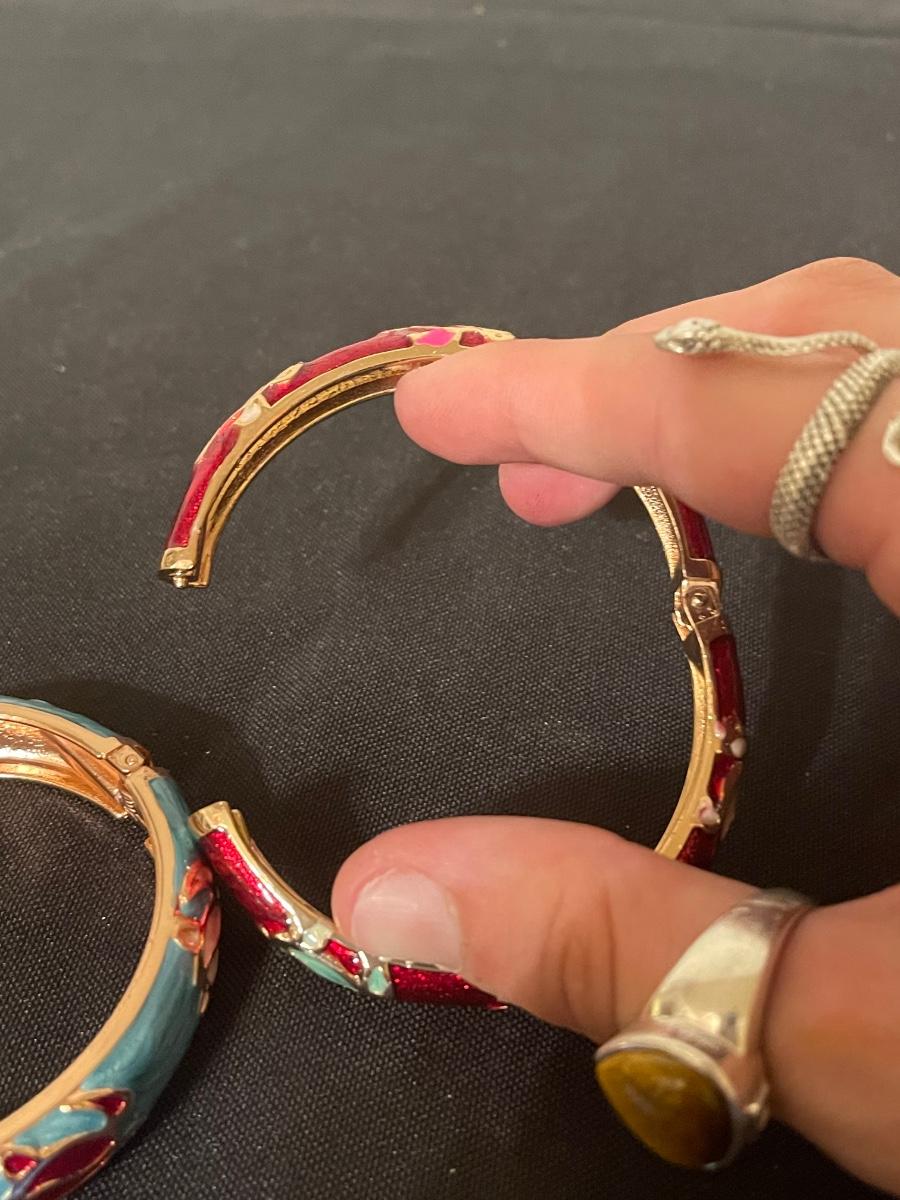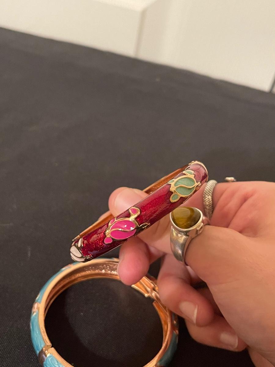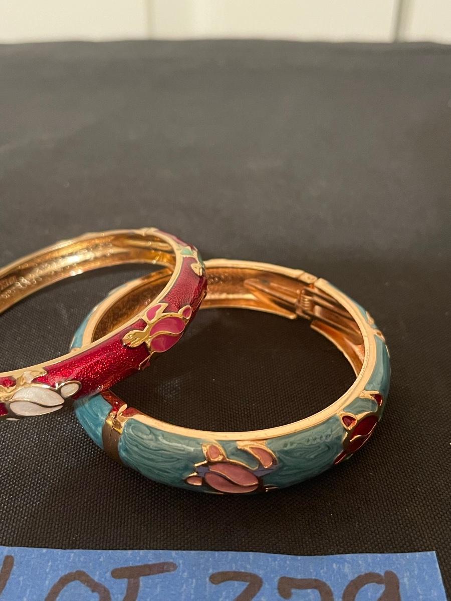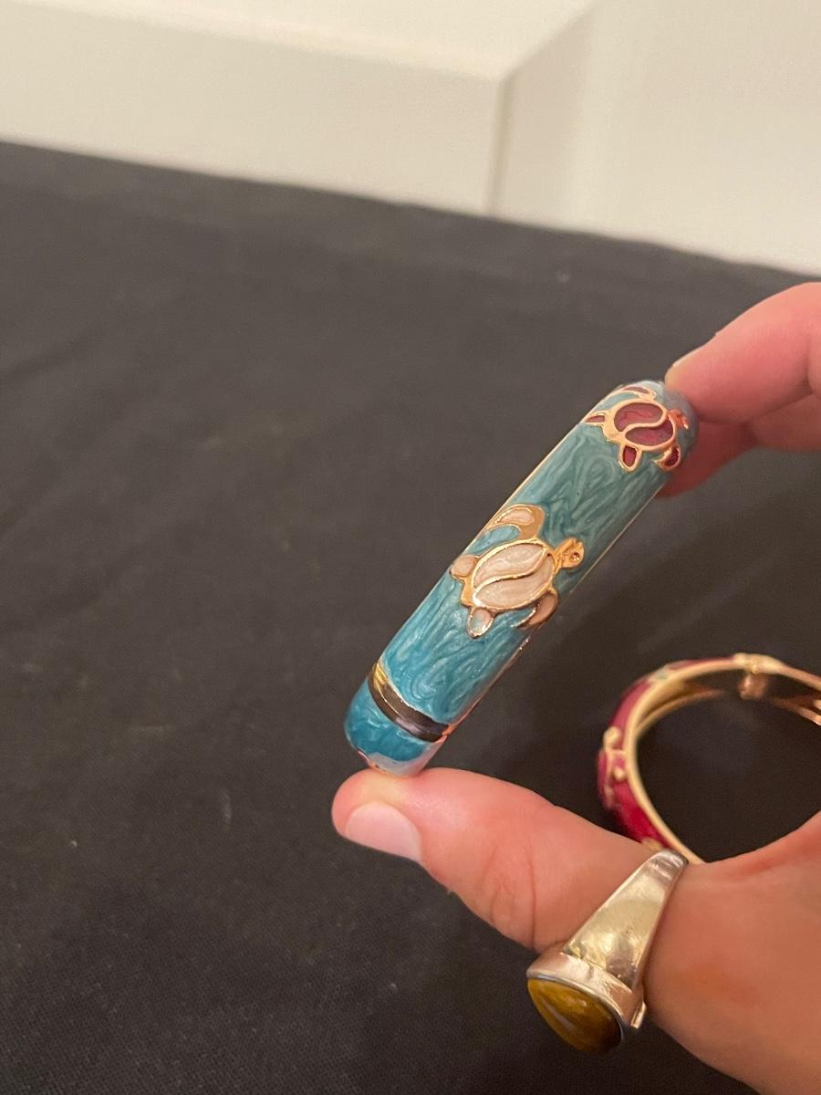 Pair of beautiful engraved sea turtle bangles marked "Jiulong ing"