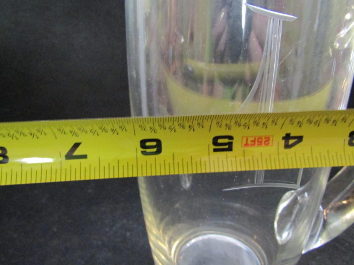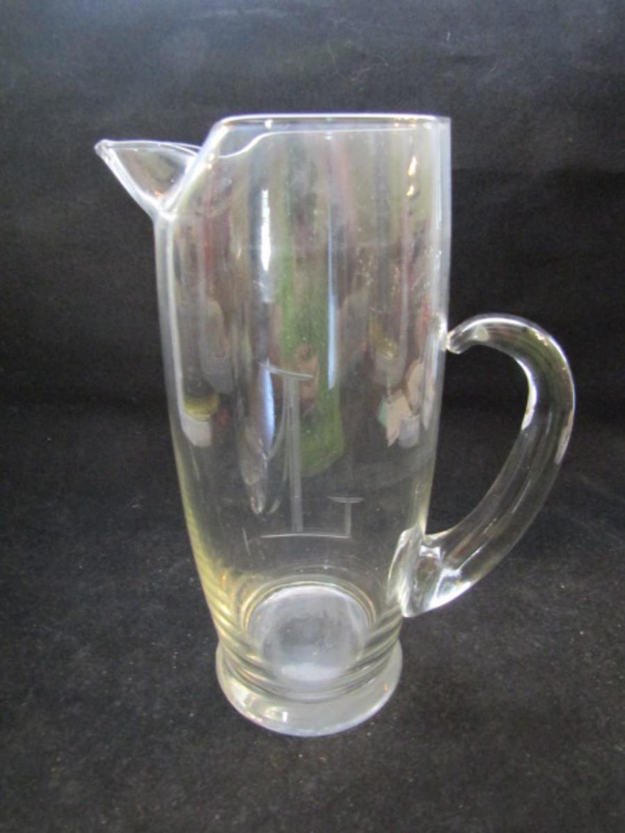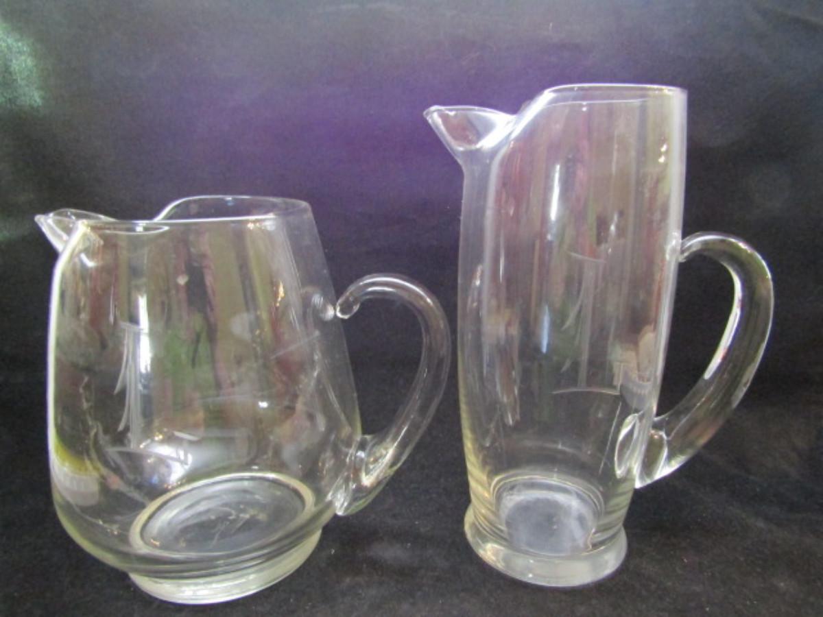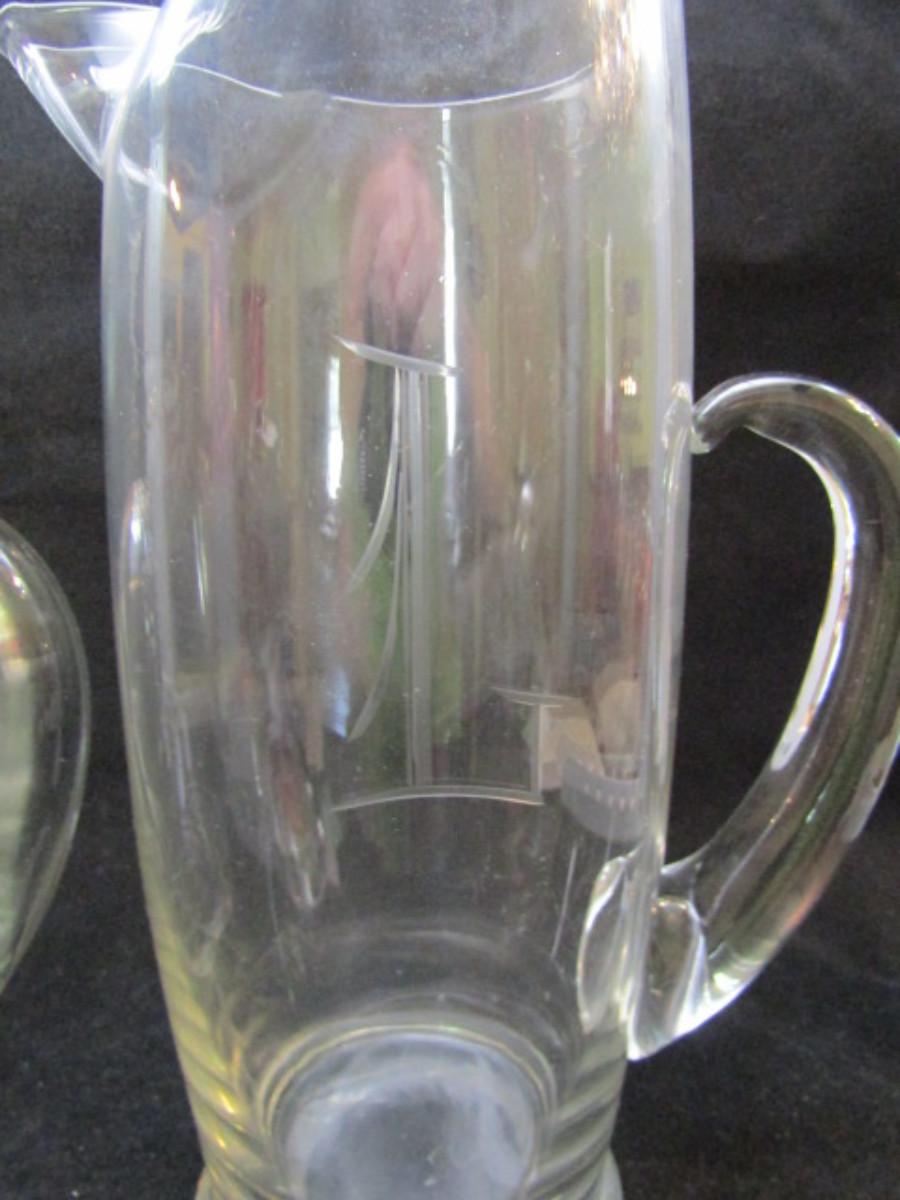 Pair of Engraved 'L' Glass/Crystal Pitchers (#192)
