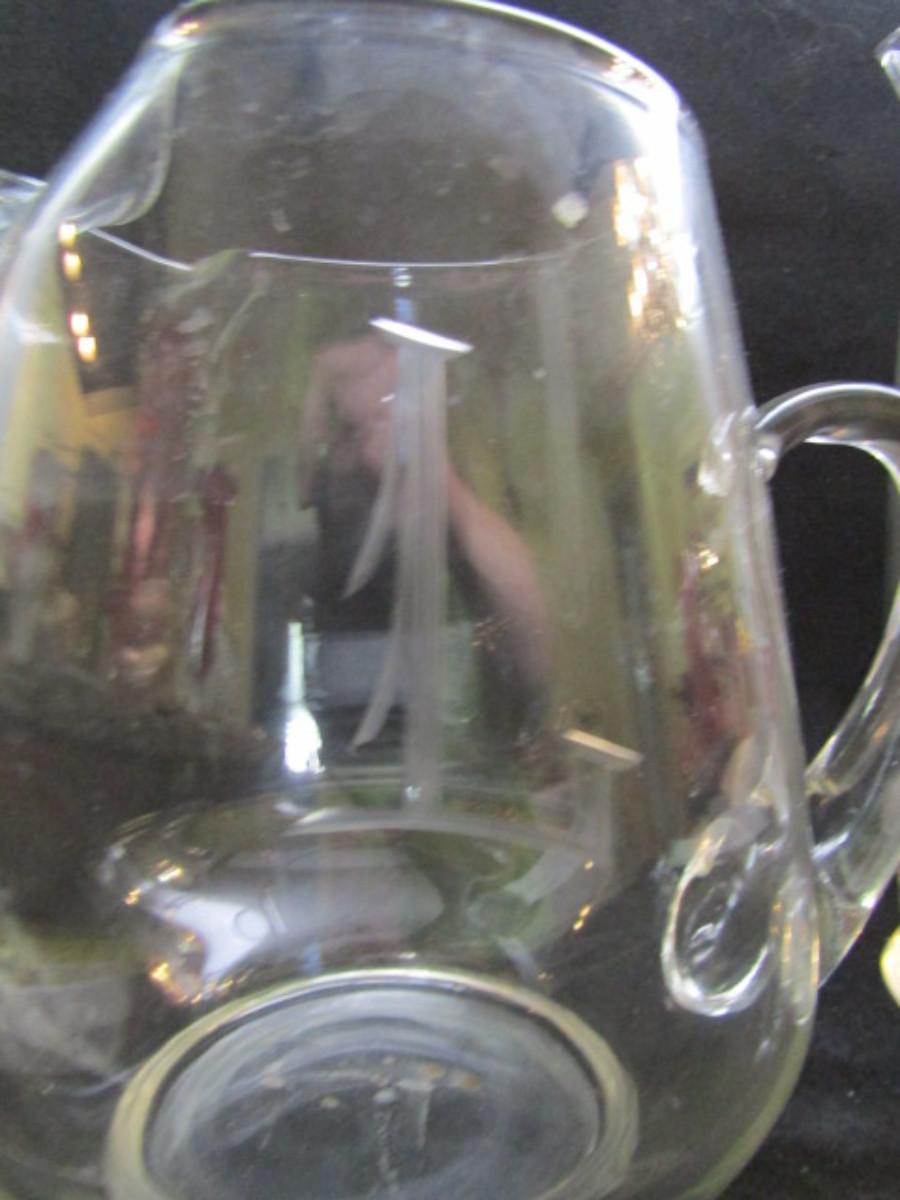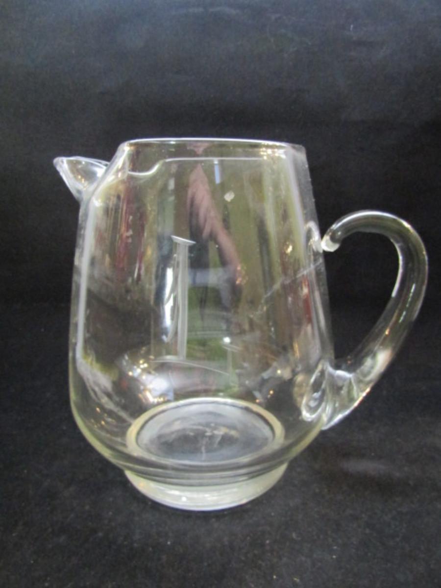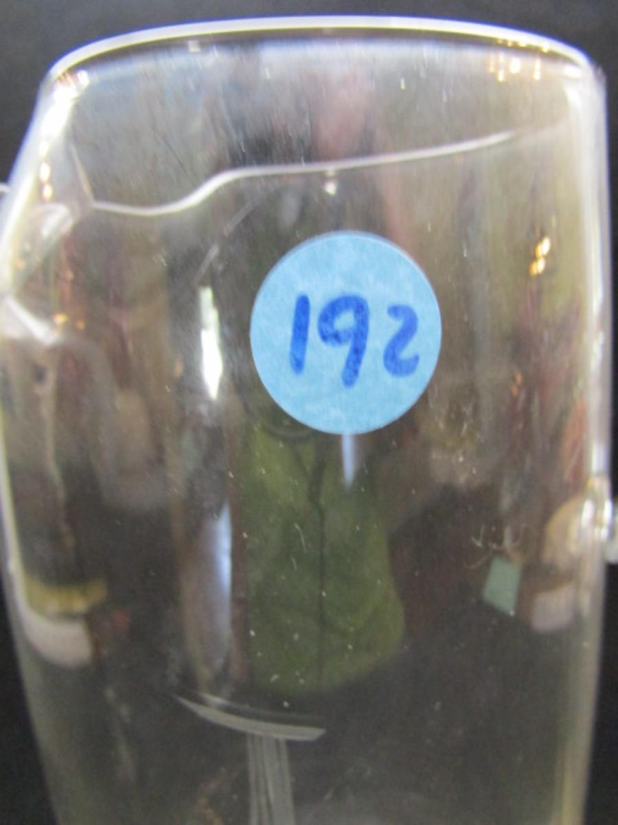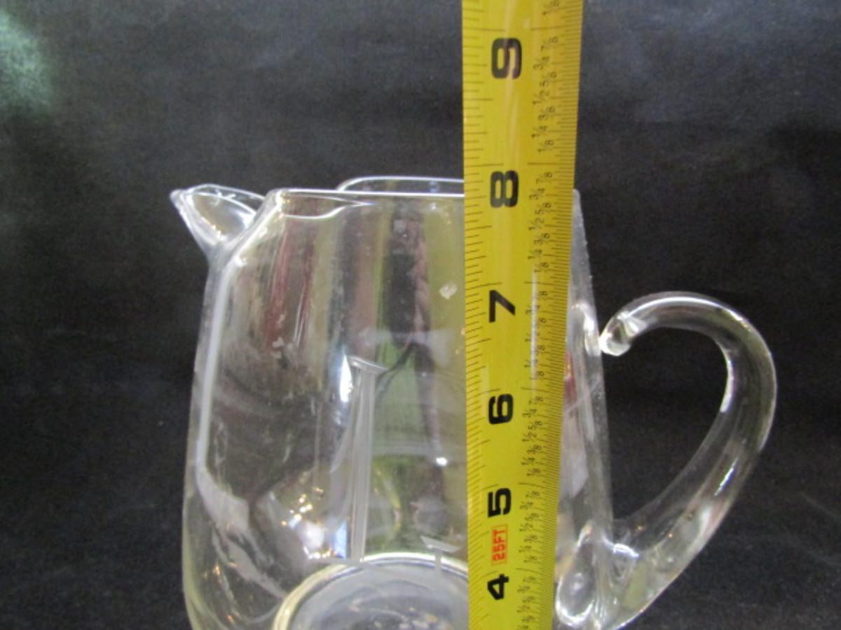 Pair of Engraved 'L' Glass/Crystal Pitchers (#192)