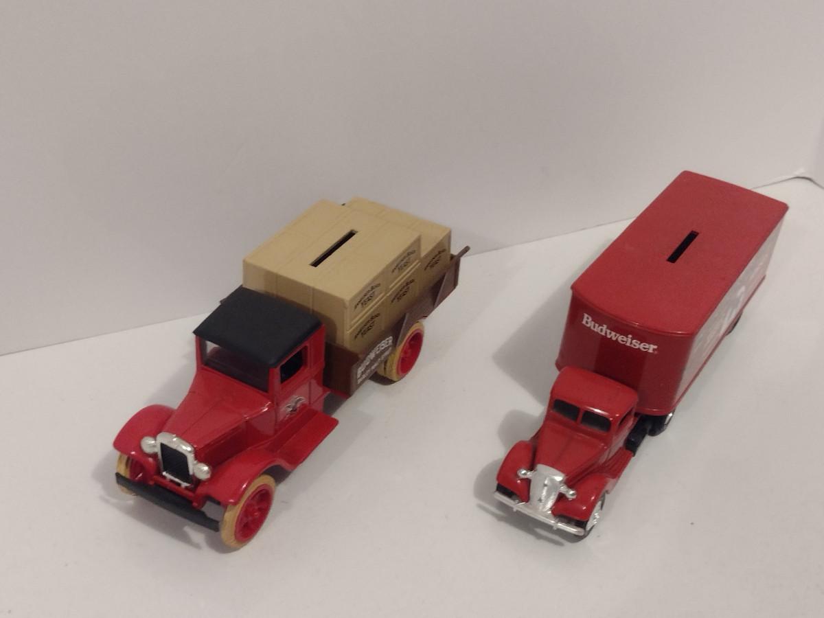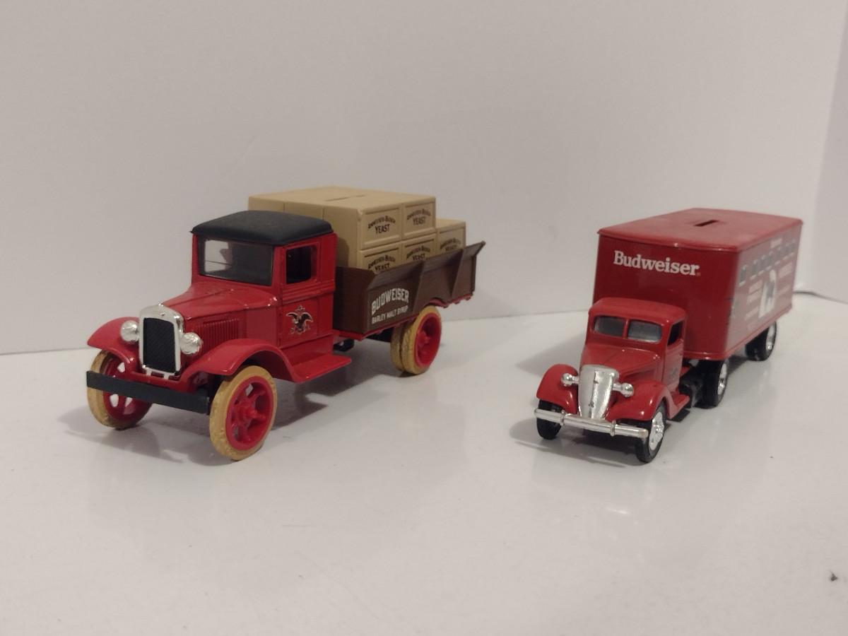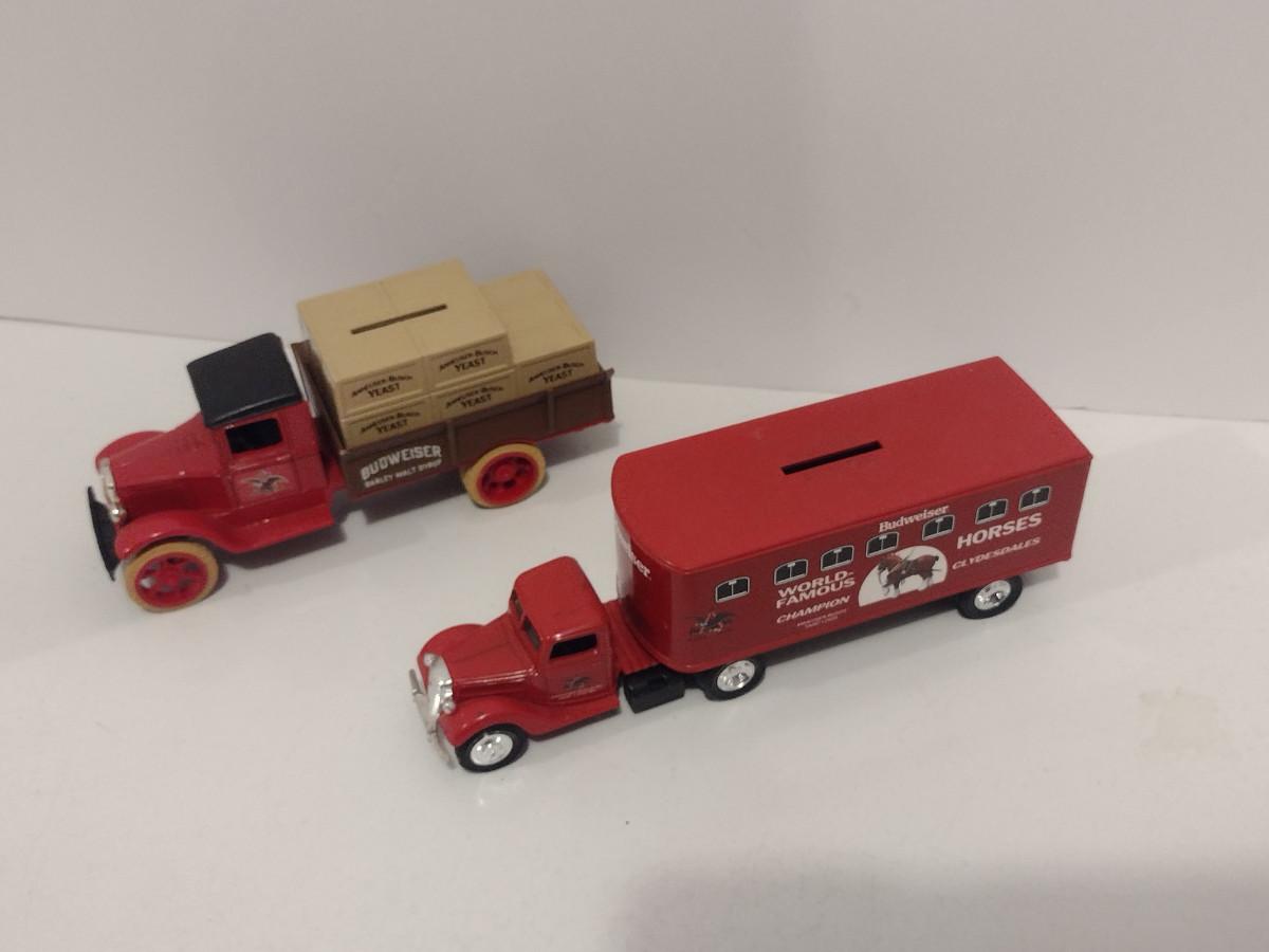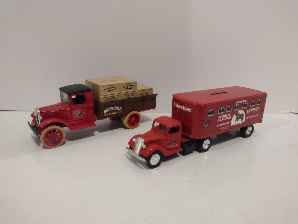 Pair of ERTL Scale Model Die Cast Banks- Budweiser Trucks
