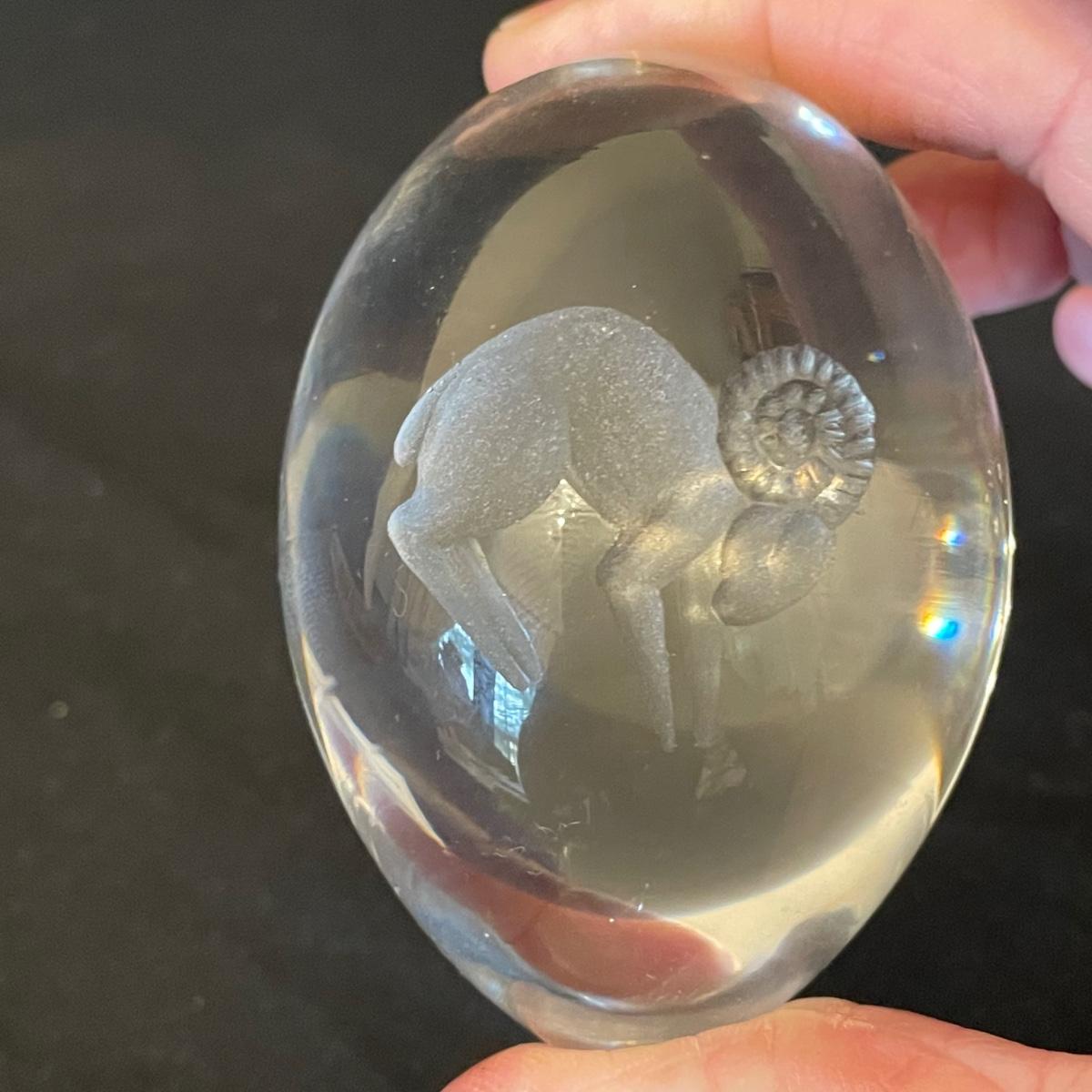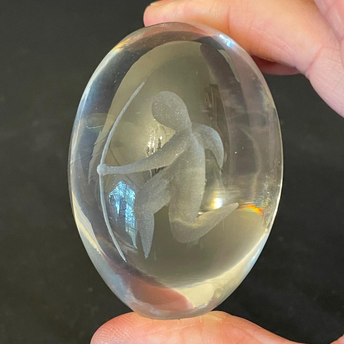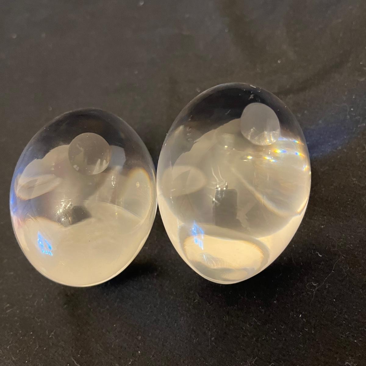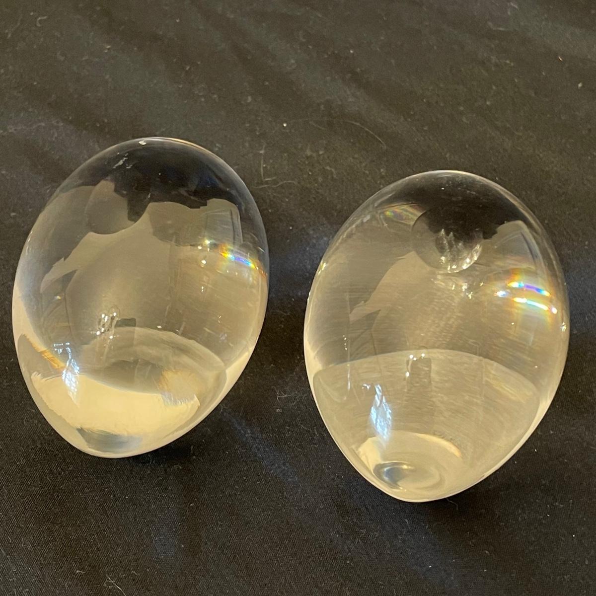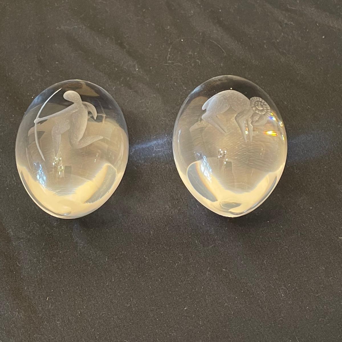 Pair of Etched Crystal Glass Paperweights (DR-RG)