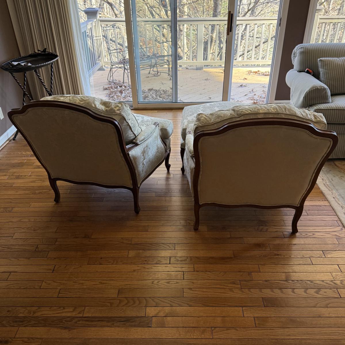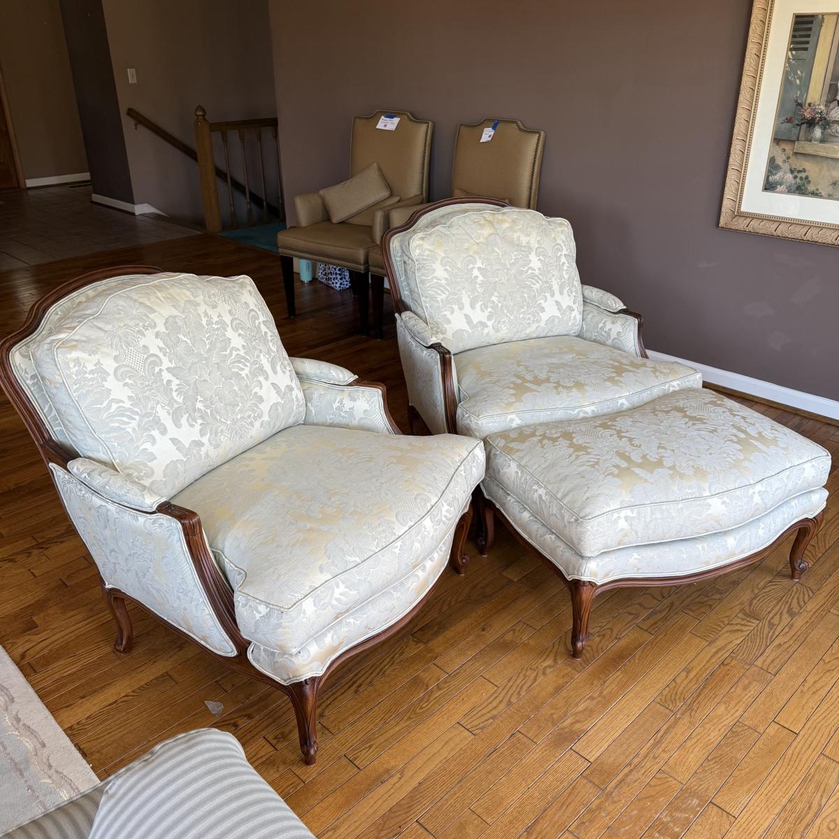 Pair of Ethan Allen Versailles Arm Chairs with Ottoman (LR-BM)