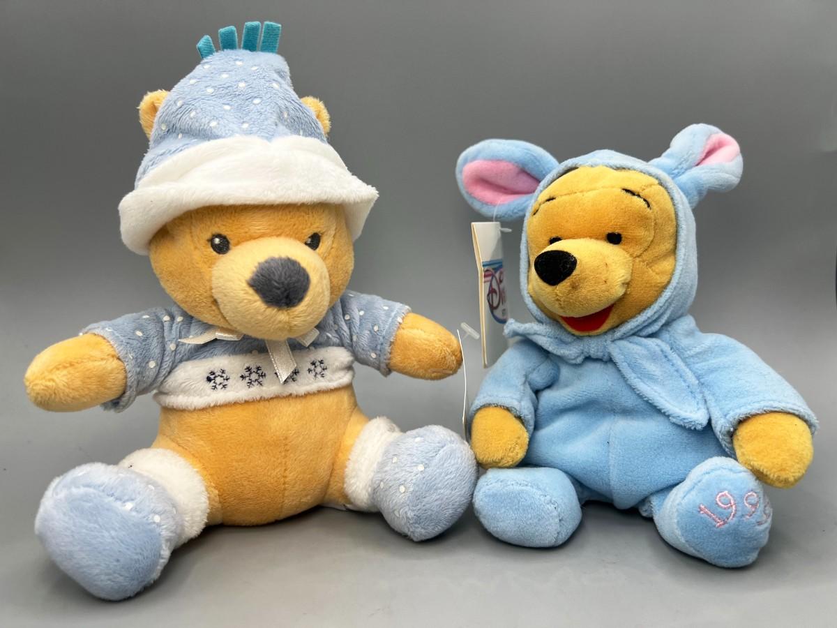 Pair of Exclusive Disney Store Winnie the Pooh Easter Bunny & Christmas Holiday Plushies with Tags