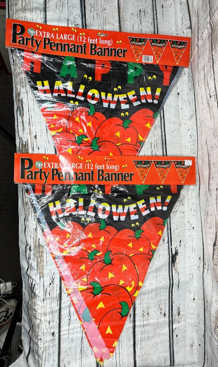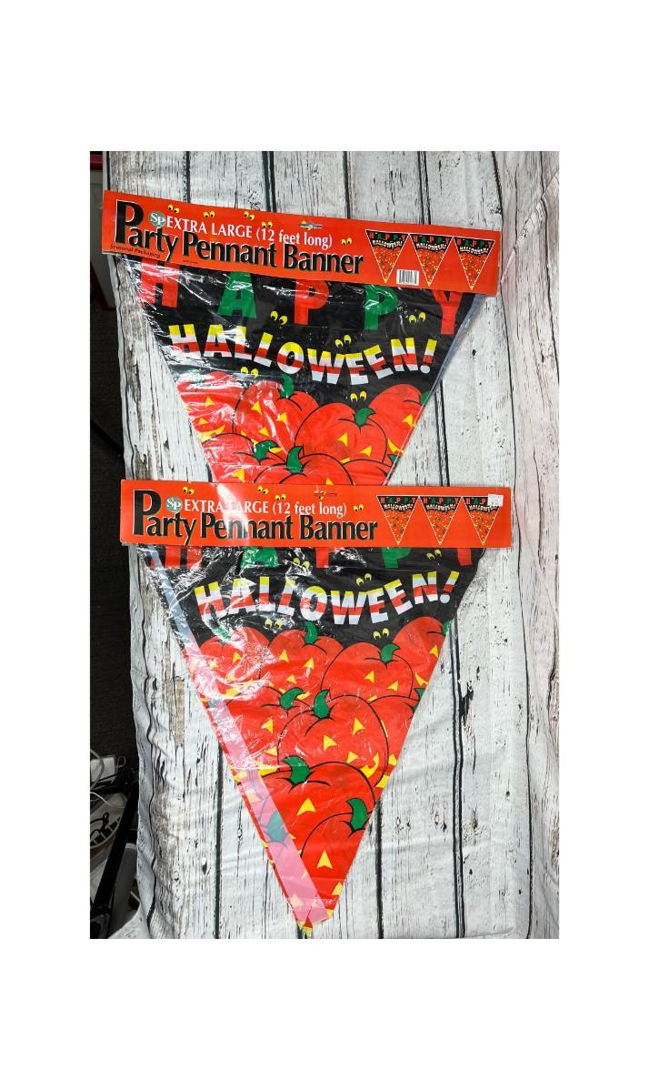 Pair of Extra Large Spooky Halloween Party Pennant Banners, both of the banners have not been opened and is in good useable condition. Check pictures for more details and for sizing.
