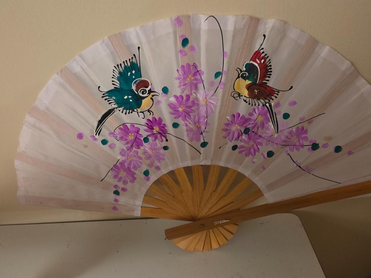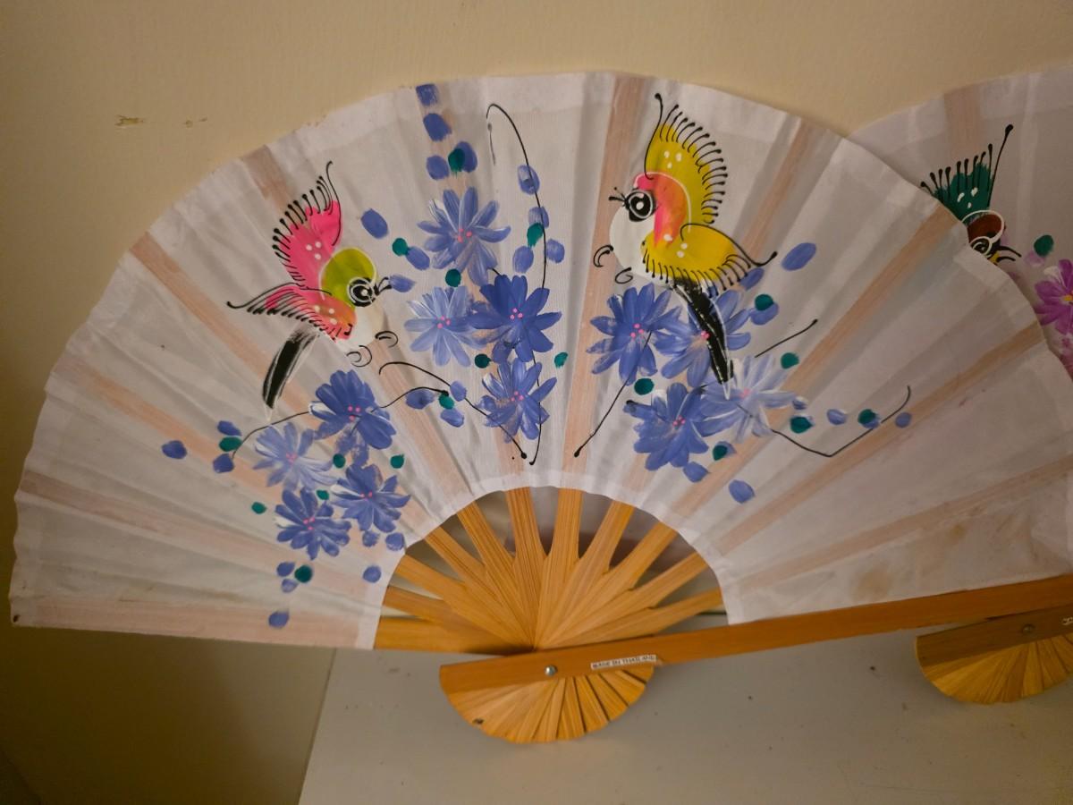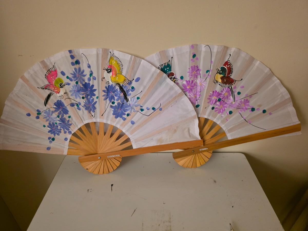 Pair of fabric decorative painted fans