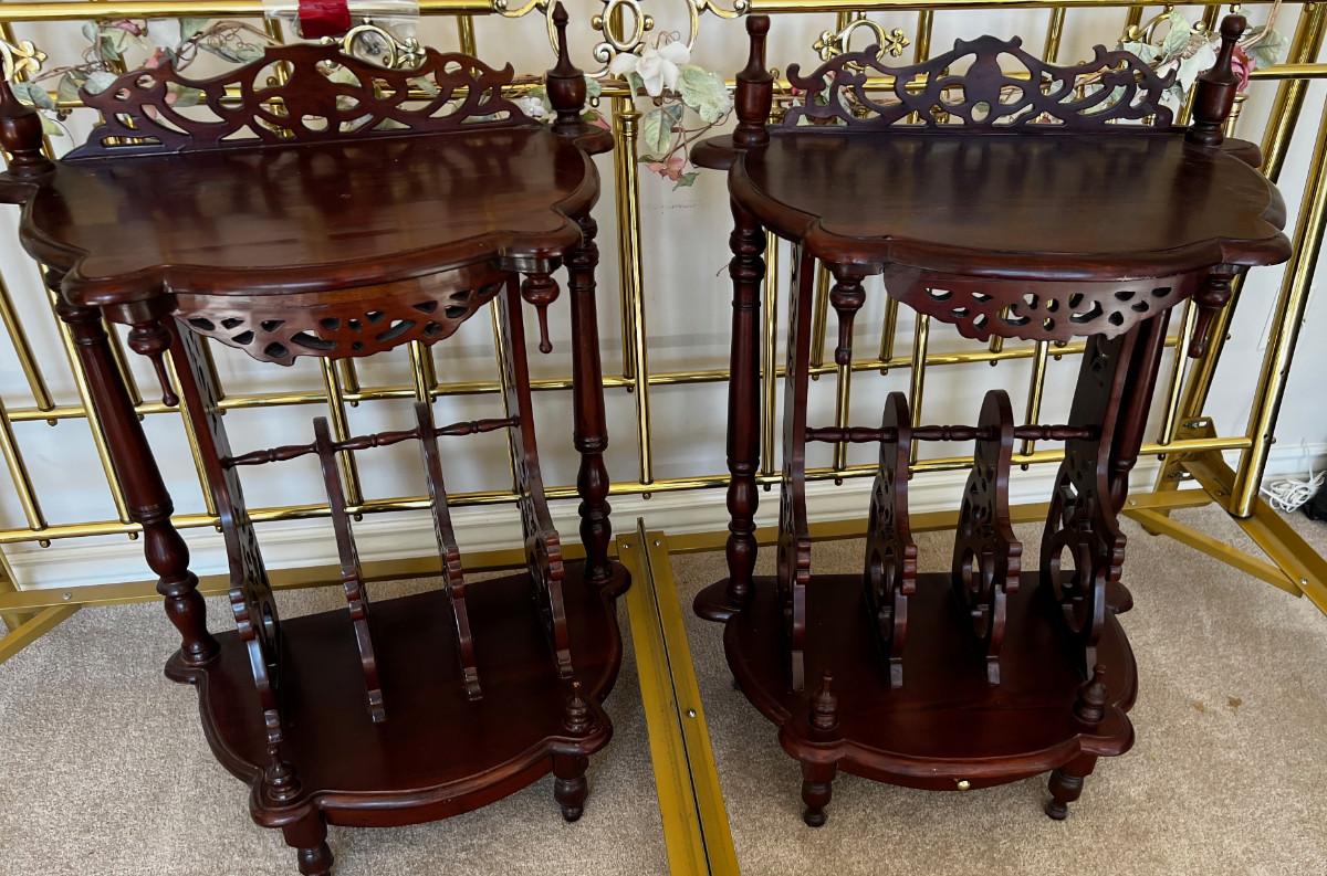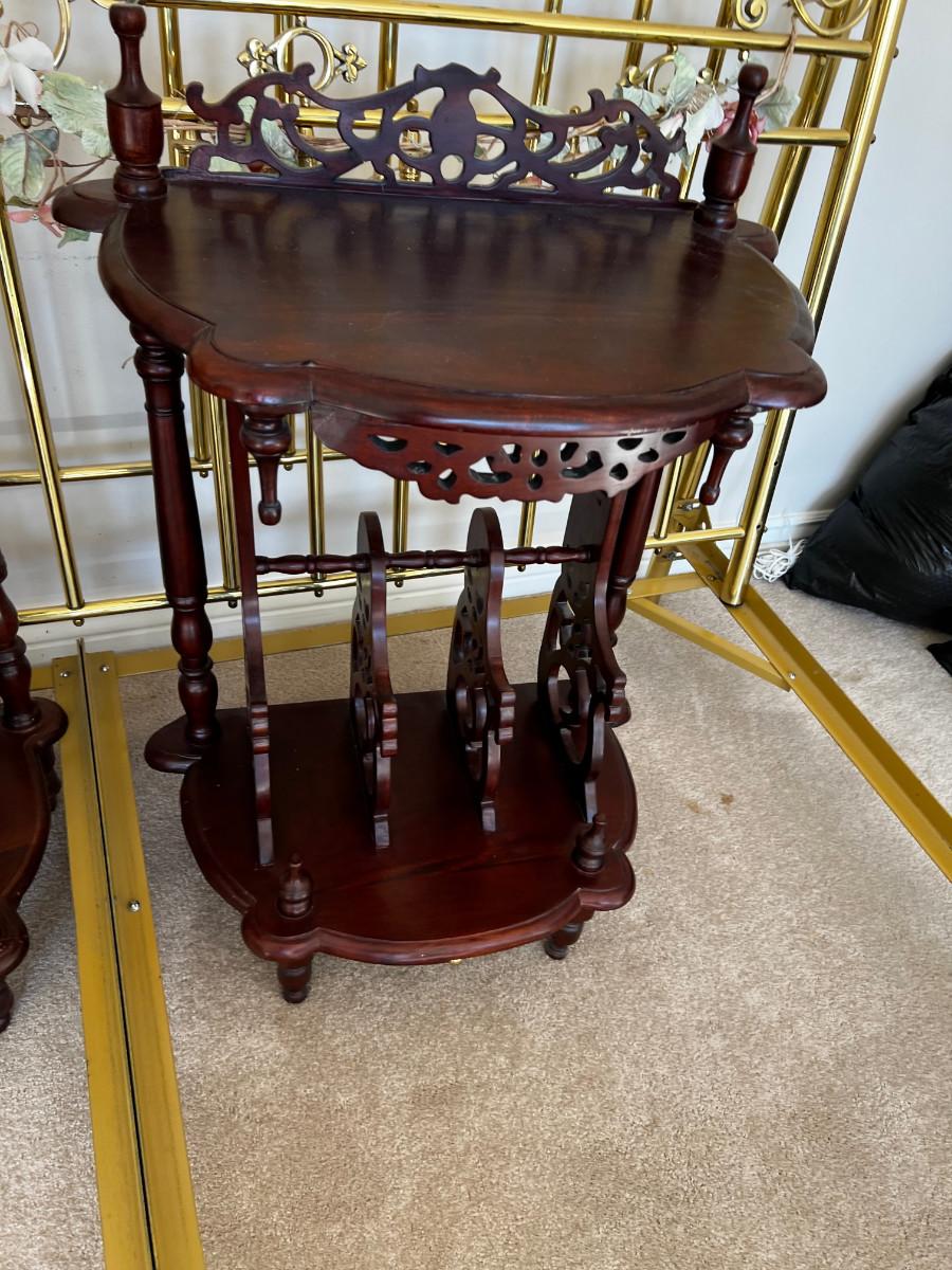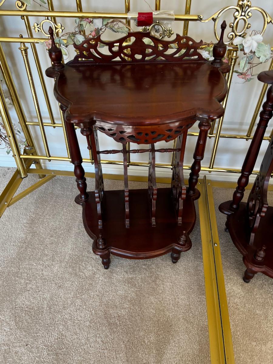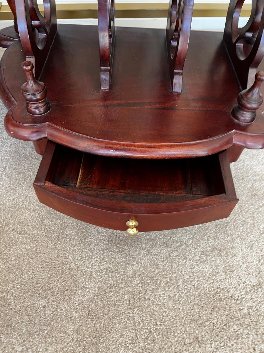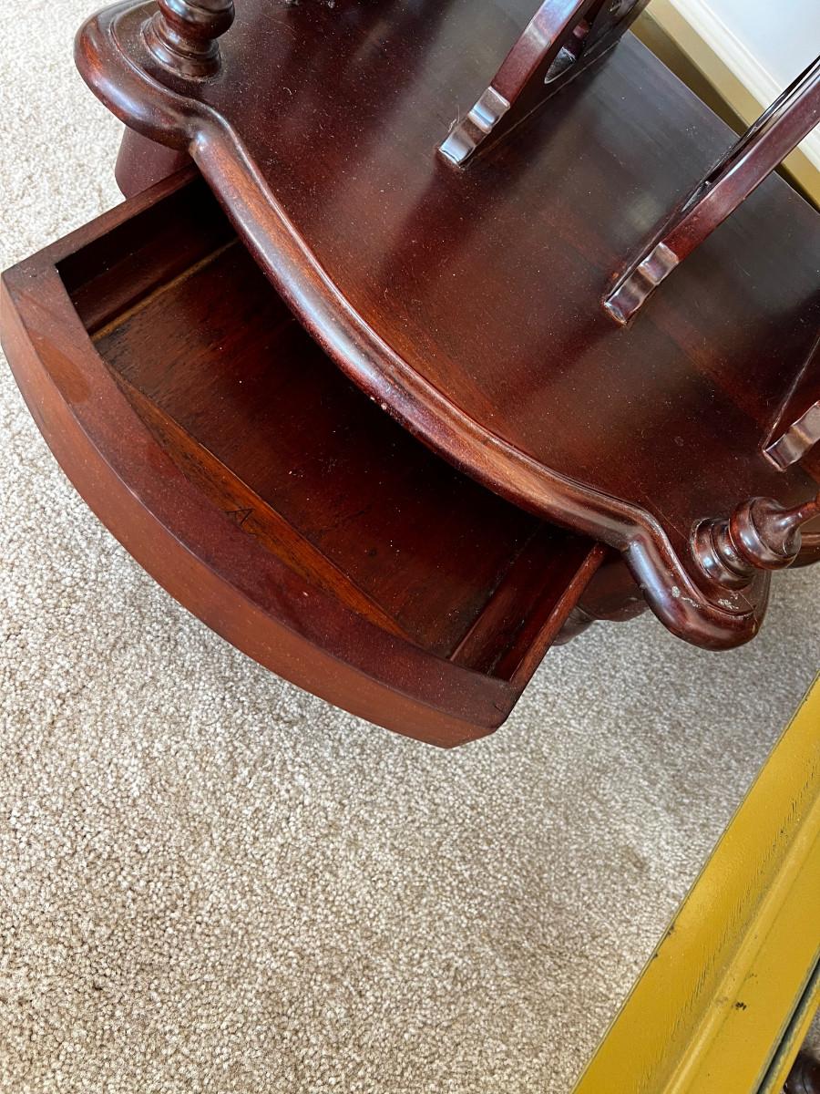 Small Hide a way Drawer. With Book Stand. Mahogany Wood. NICE. Measure 24 X 15 x 32" Tall One is missing a secret drawer pull! Otherwise very good Condition.