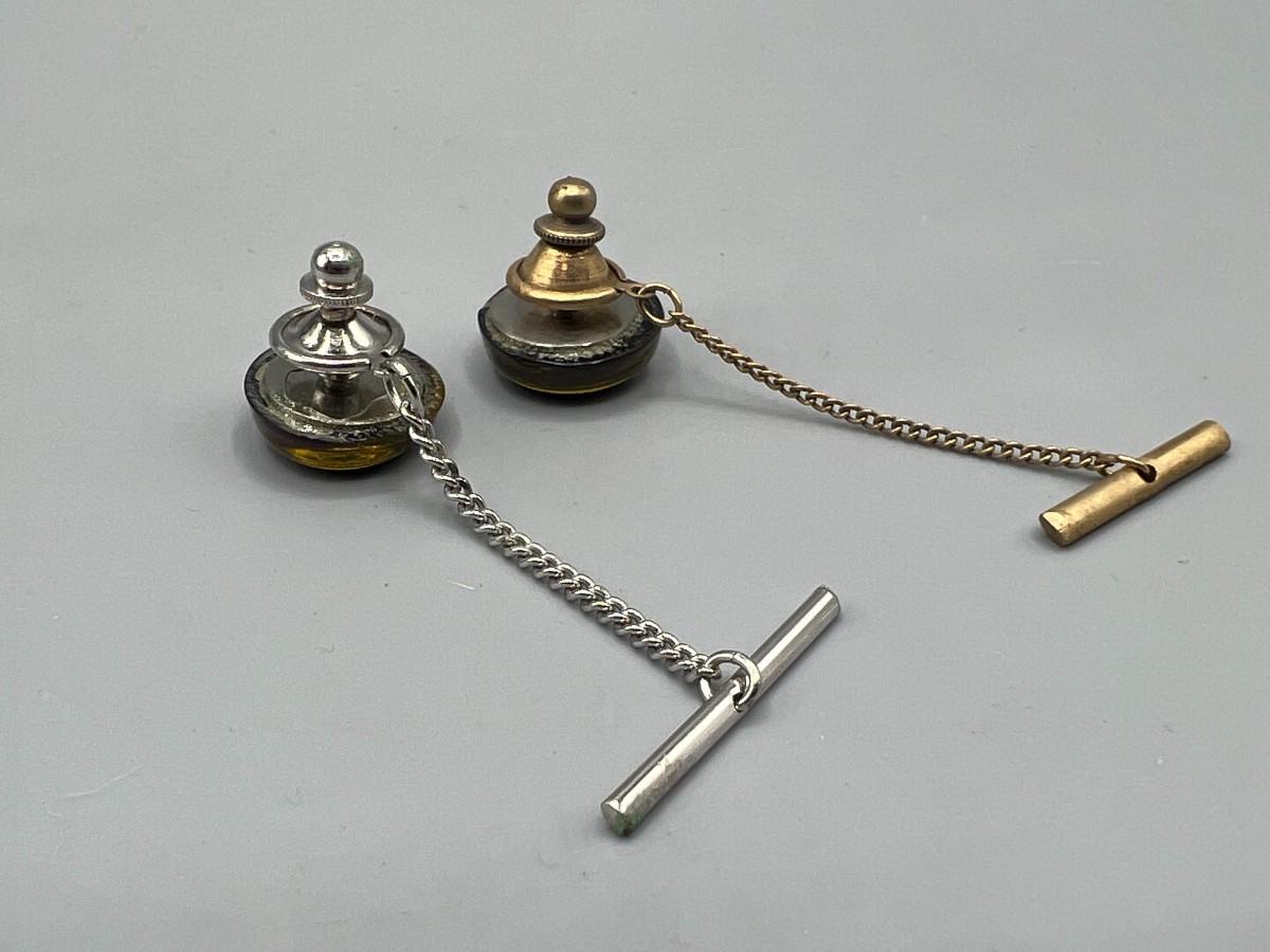 Pair of Fashionable Swirl Black Bead Mens Tie Tack Clutch