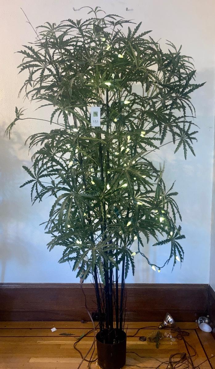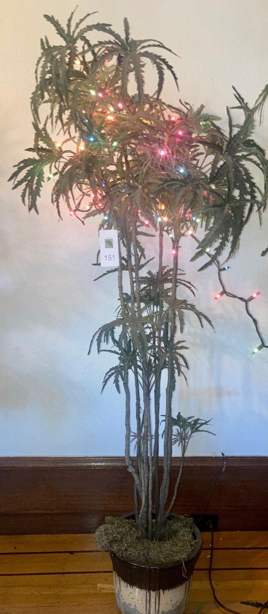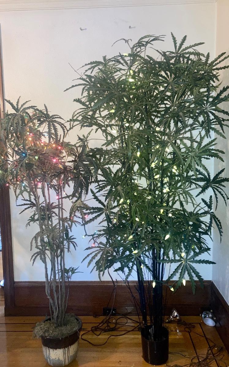 One plant at 70” with a removable strand of Christmas lights the other has green lights and is 87” tall. Both need to be hosed off but otherwise, they are in great condition.
