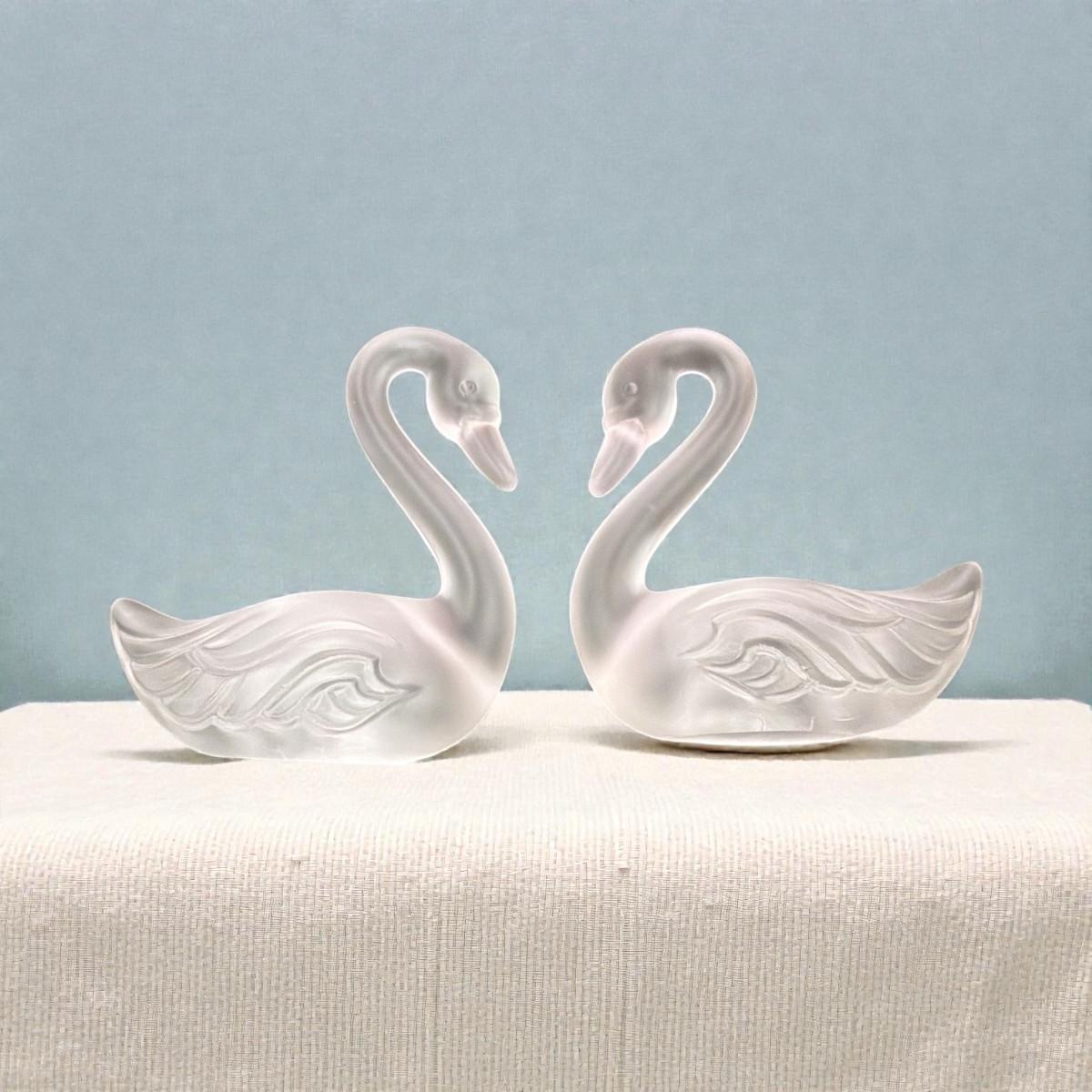 Pair of Fenton Frosted Clear Glass Swan Figurines