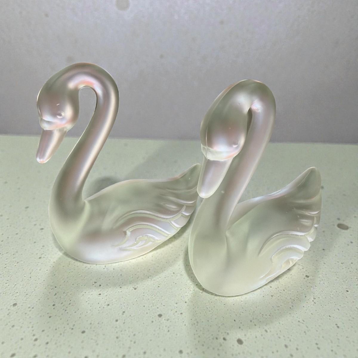 Pair of Fenton Frosted Clear Glass Swan Figurines. Approximately 4.5" Tall