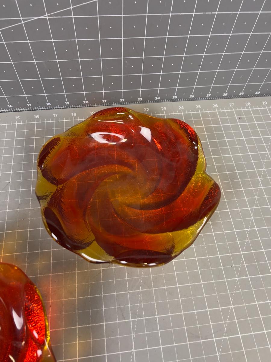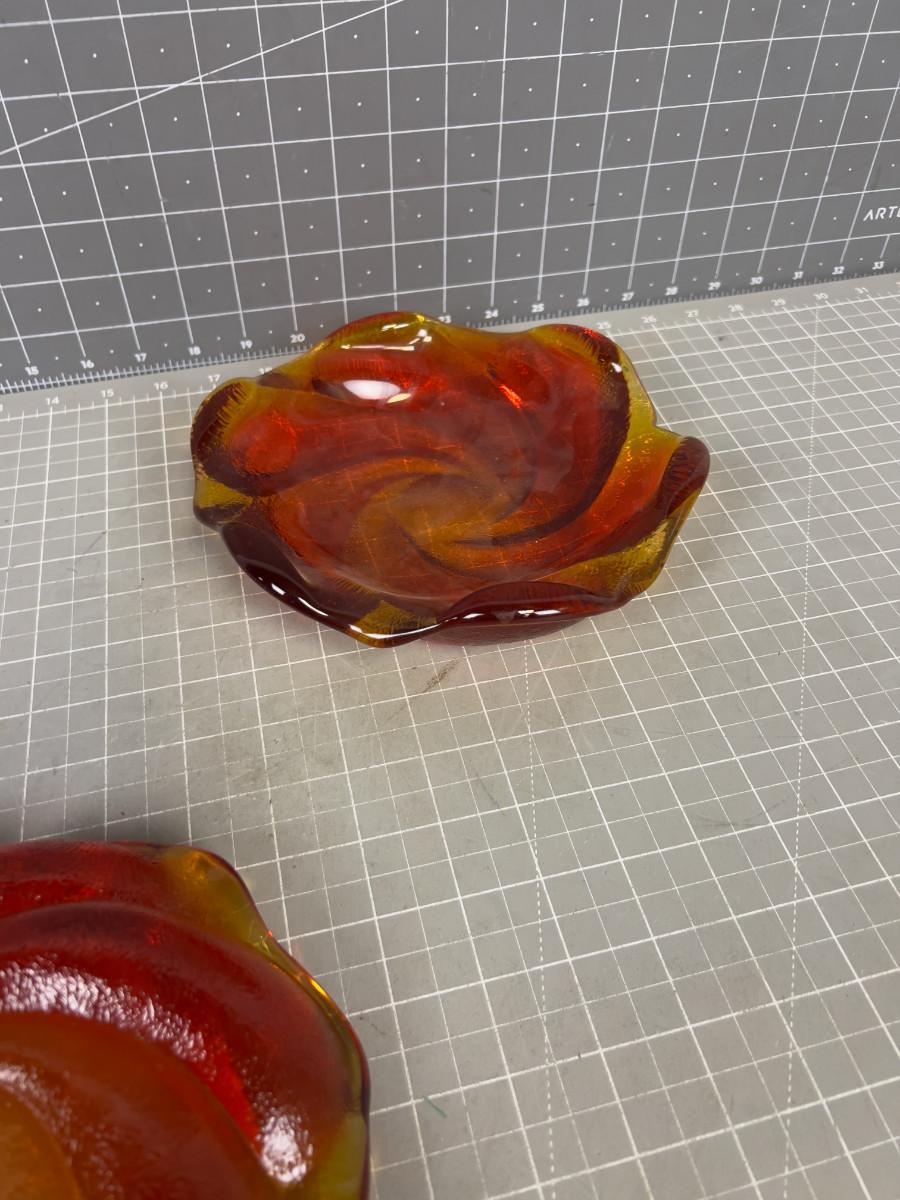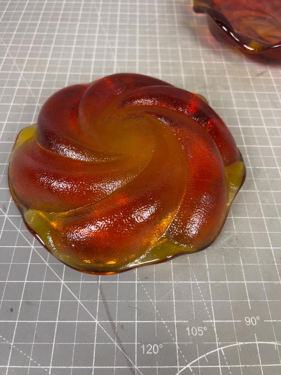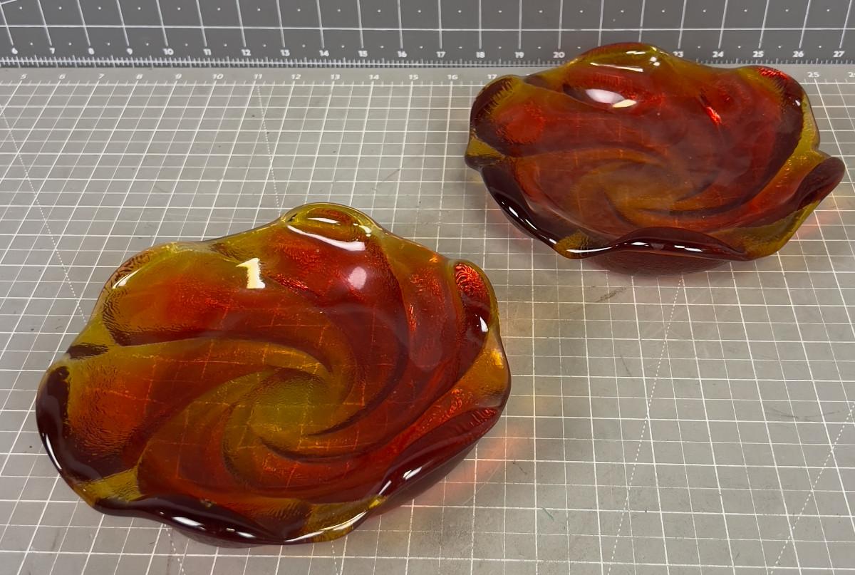 Pair of Fenton LARGE Free Form Orange Swirl Ashtrays, Glass
