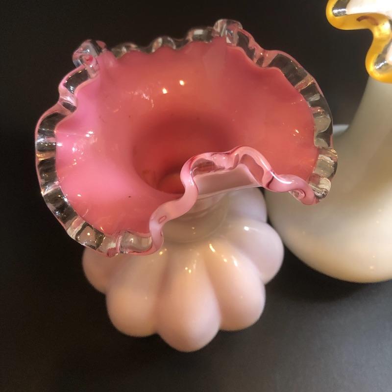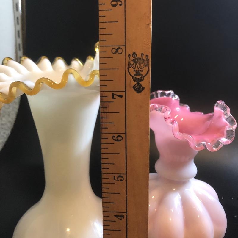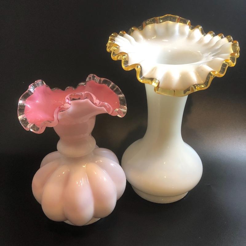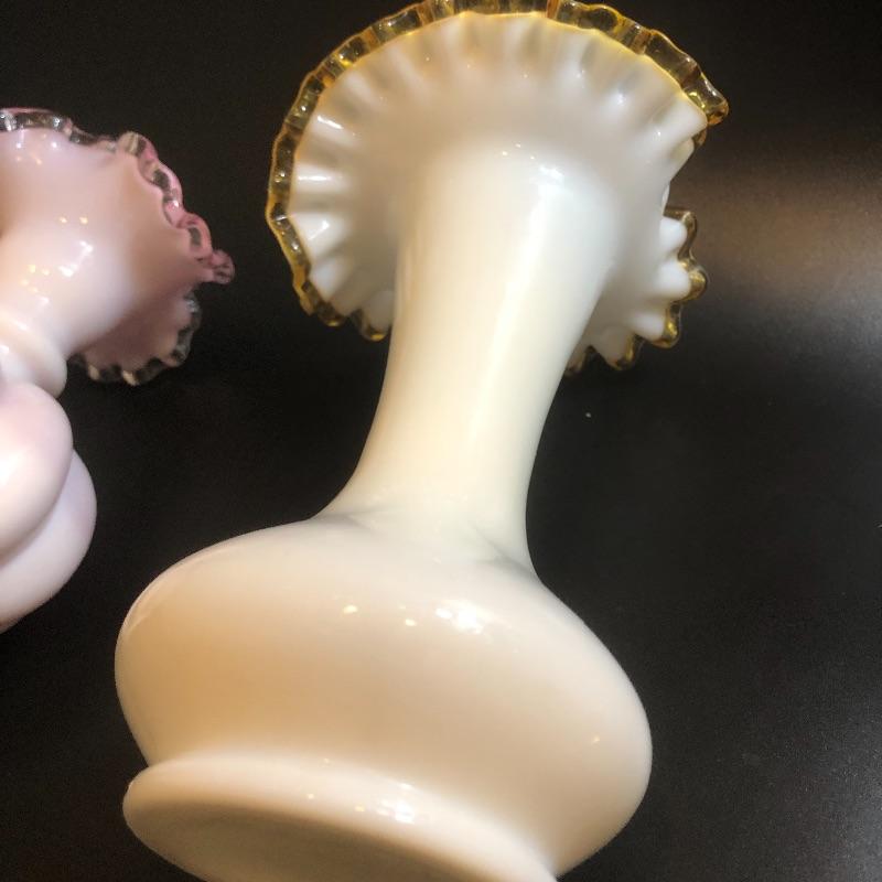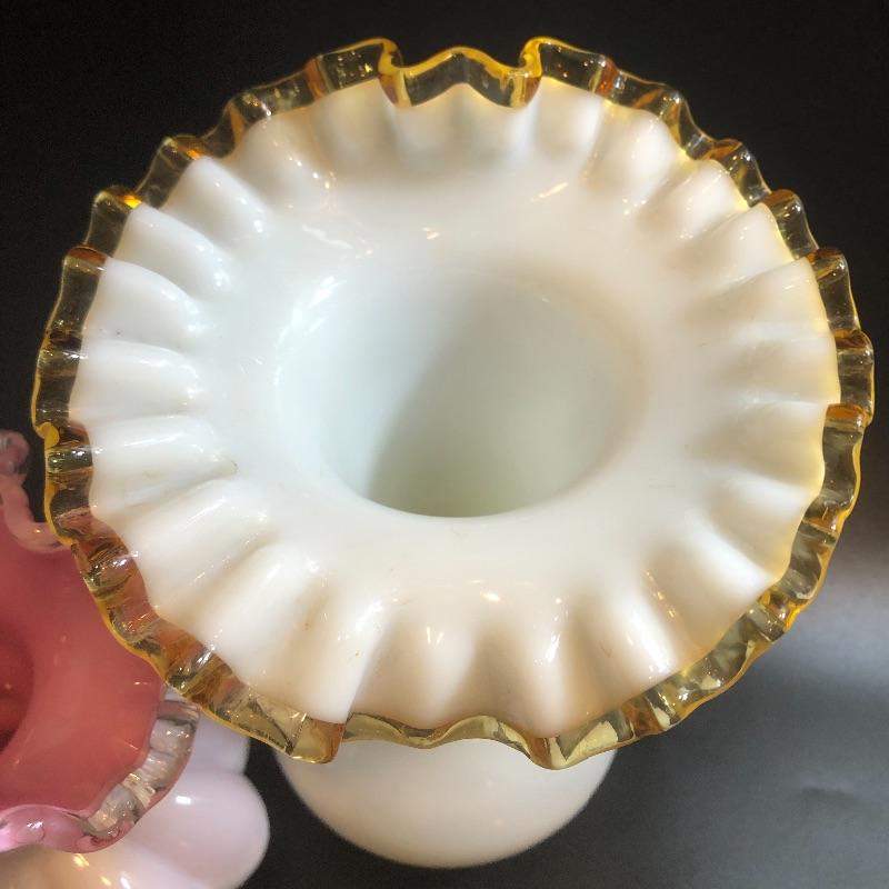 Pair of Fenton Vases - Ruffled Melon and Gold Crest
