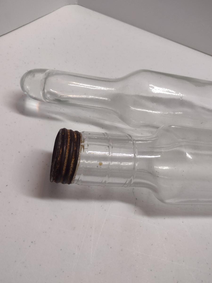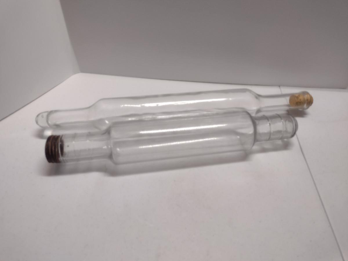 Pair of Fillable Glass Rolling Pins- One with Screw-on Metal Cap, One with Cork Stopper