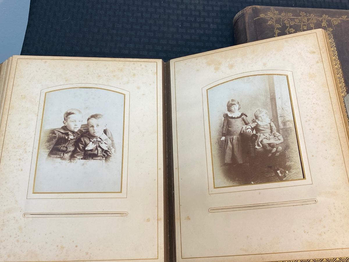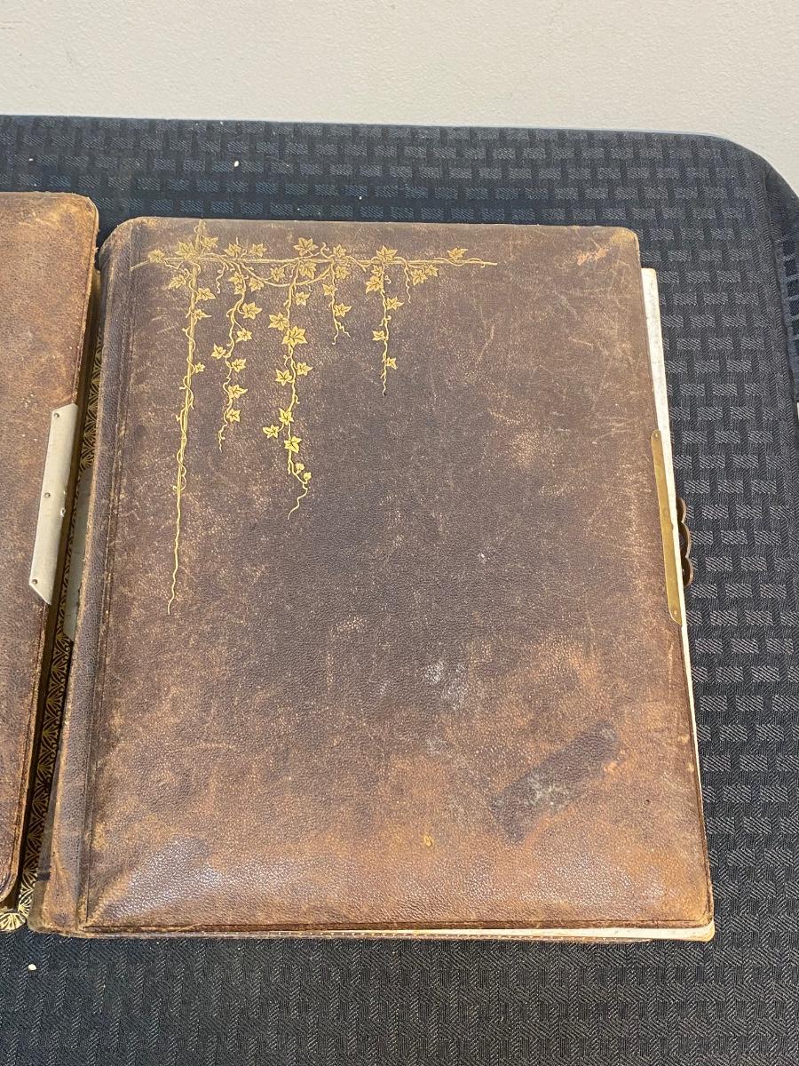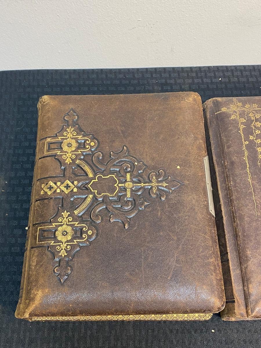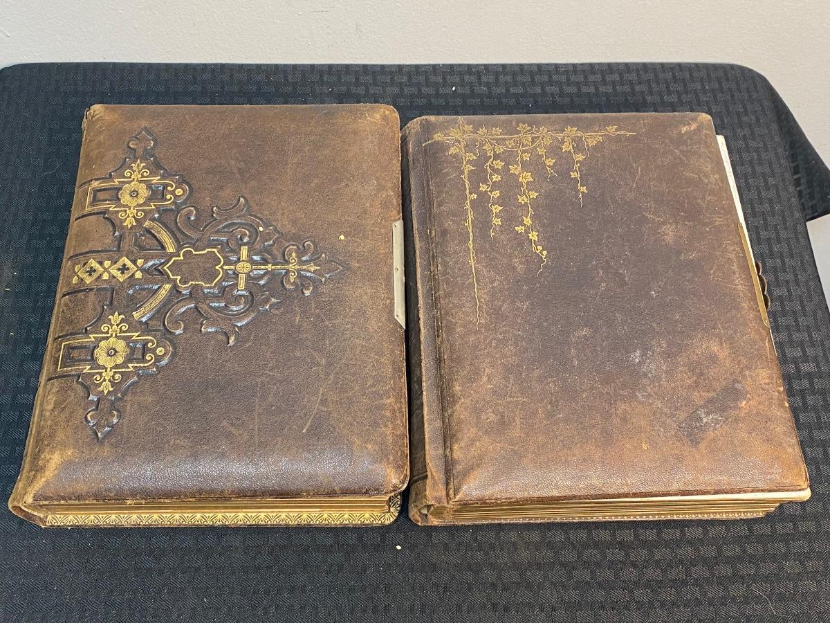 Pair of Filled Antique Victorian Photo Albums with Various & Interesting Types of Photos, there is some damage to the albums, but there is no significant tears or rips to the Victorian photo cards in the albums and is in good condition for its age. Check pictures for more details and for sizing.