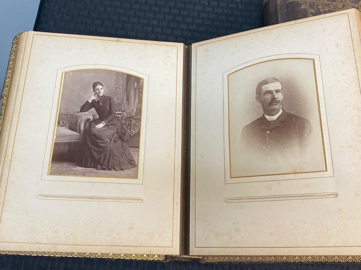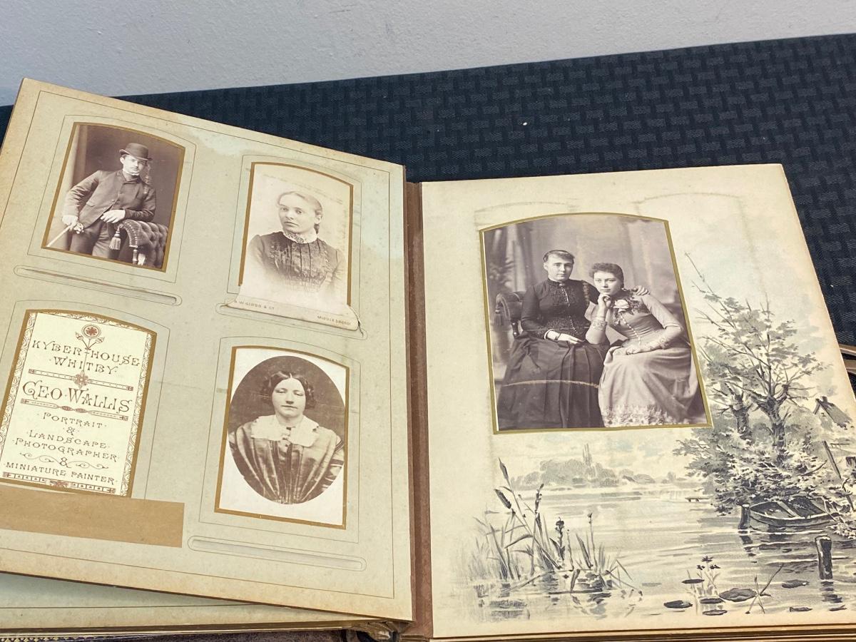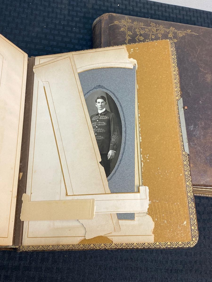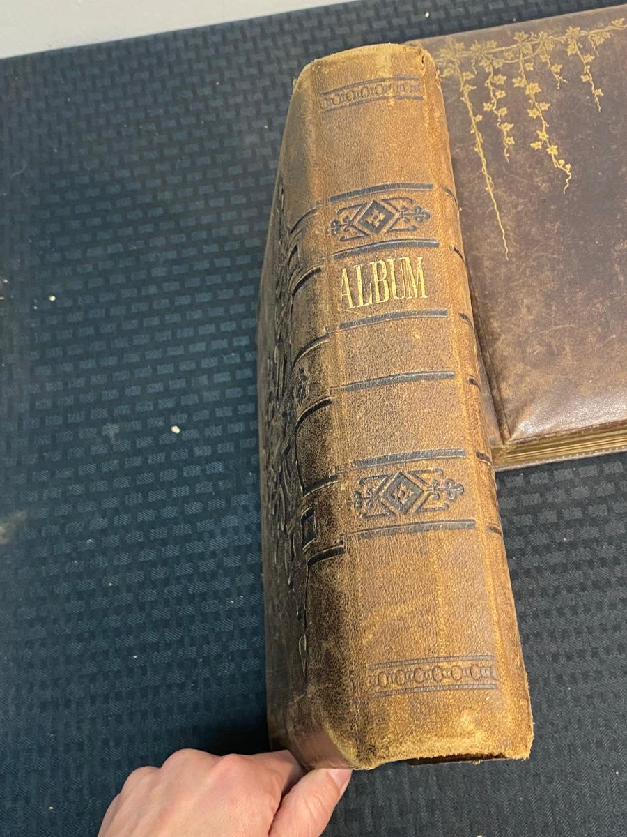 Pair of Filled Antique Victorian Photo Albums with Various & Interesting Types of Photos, there is some damage to the albums, but there is no significant tears or rips to the Victorian photo cards in the albums and is in good condition for its age. Check pictures for more details and for sizing.