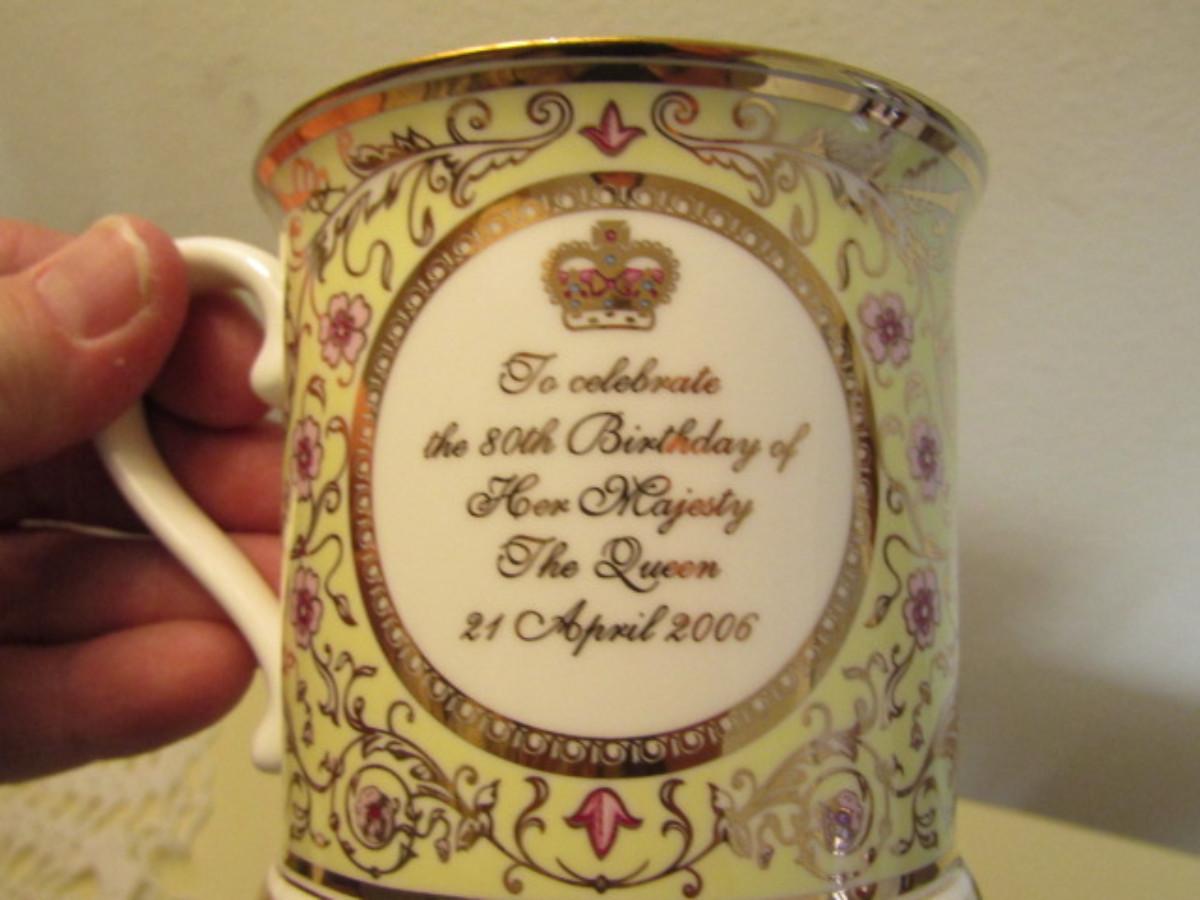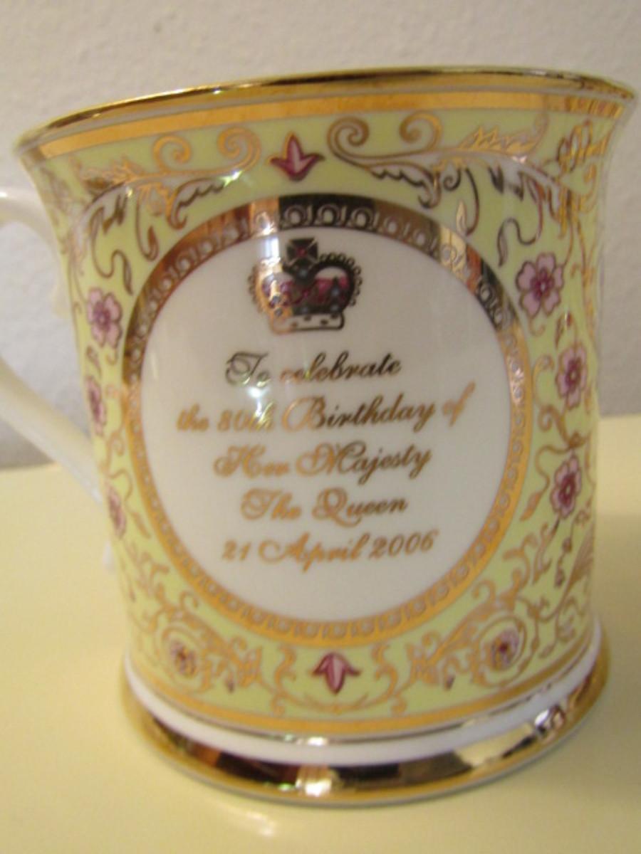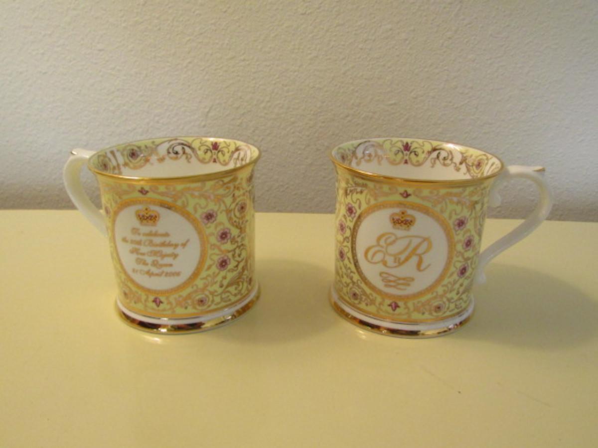 Pair of Fine Bone China Cups Celebrating Queen Elizabeth's 80th Birthday
