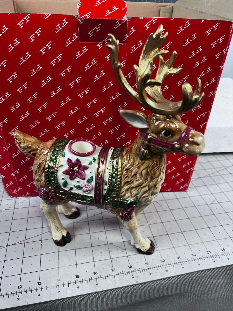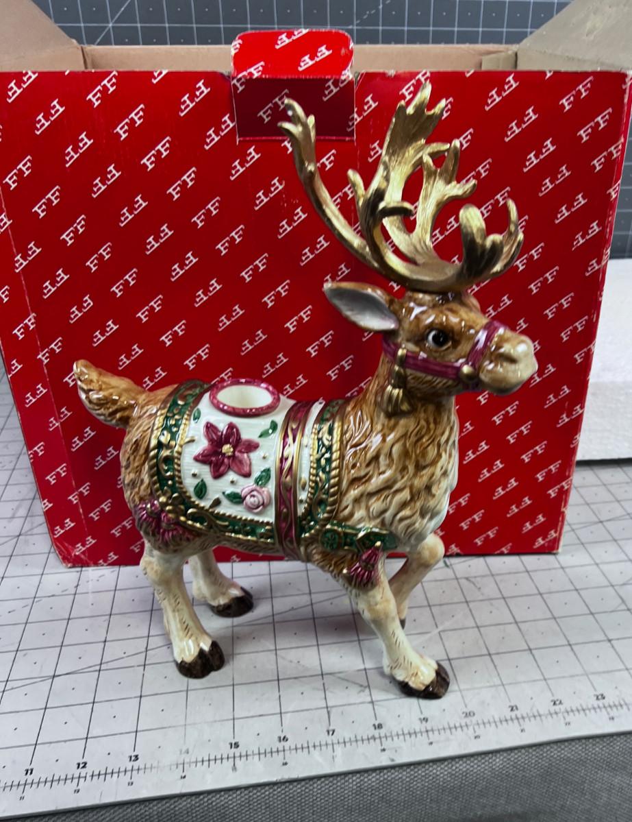 Pair of Fitz & Floyd Father Christmas Reindeer Candle Sticks, (2) in the Box.