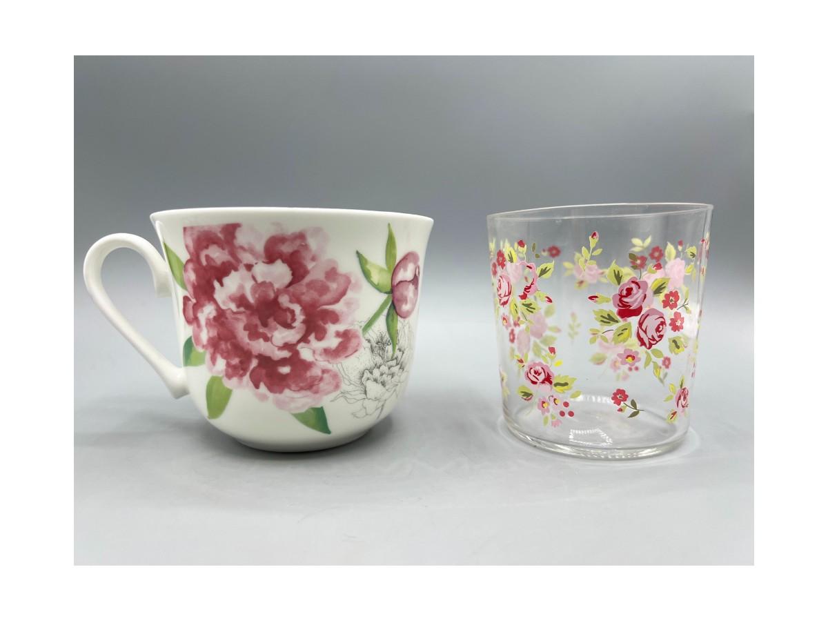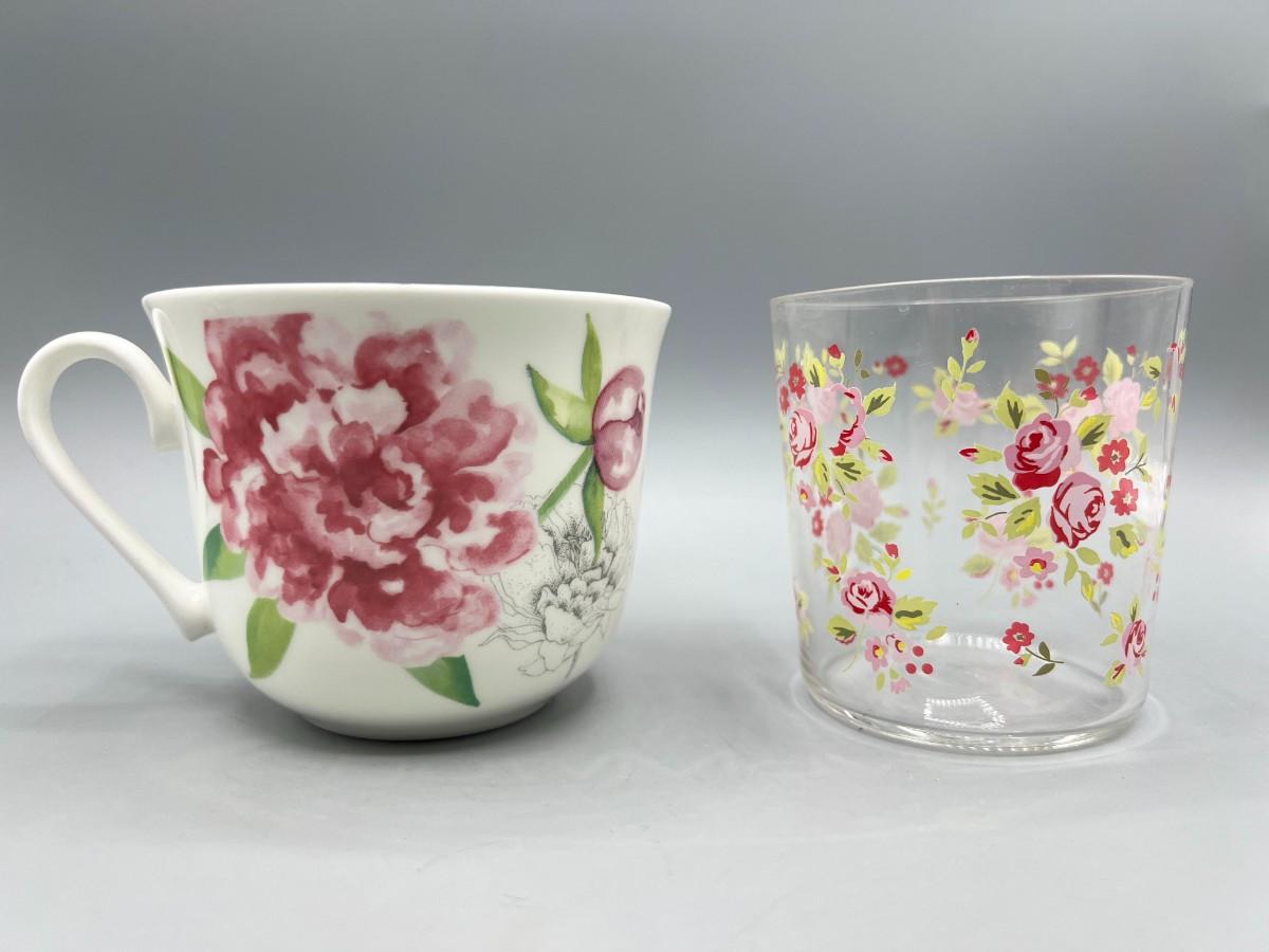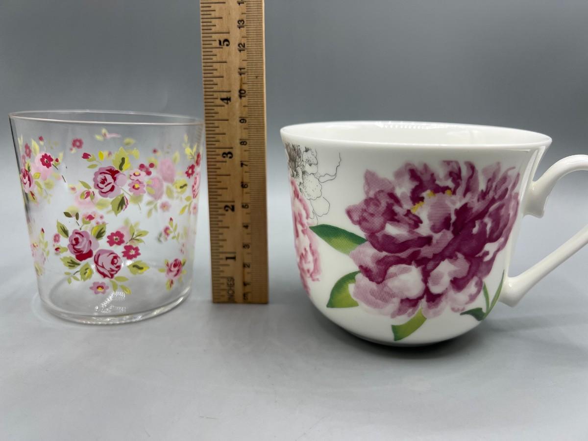 Pair of Floral Drinking Cups Floral Fine Bone China Peony Mug & Glass Cup
