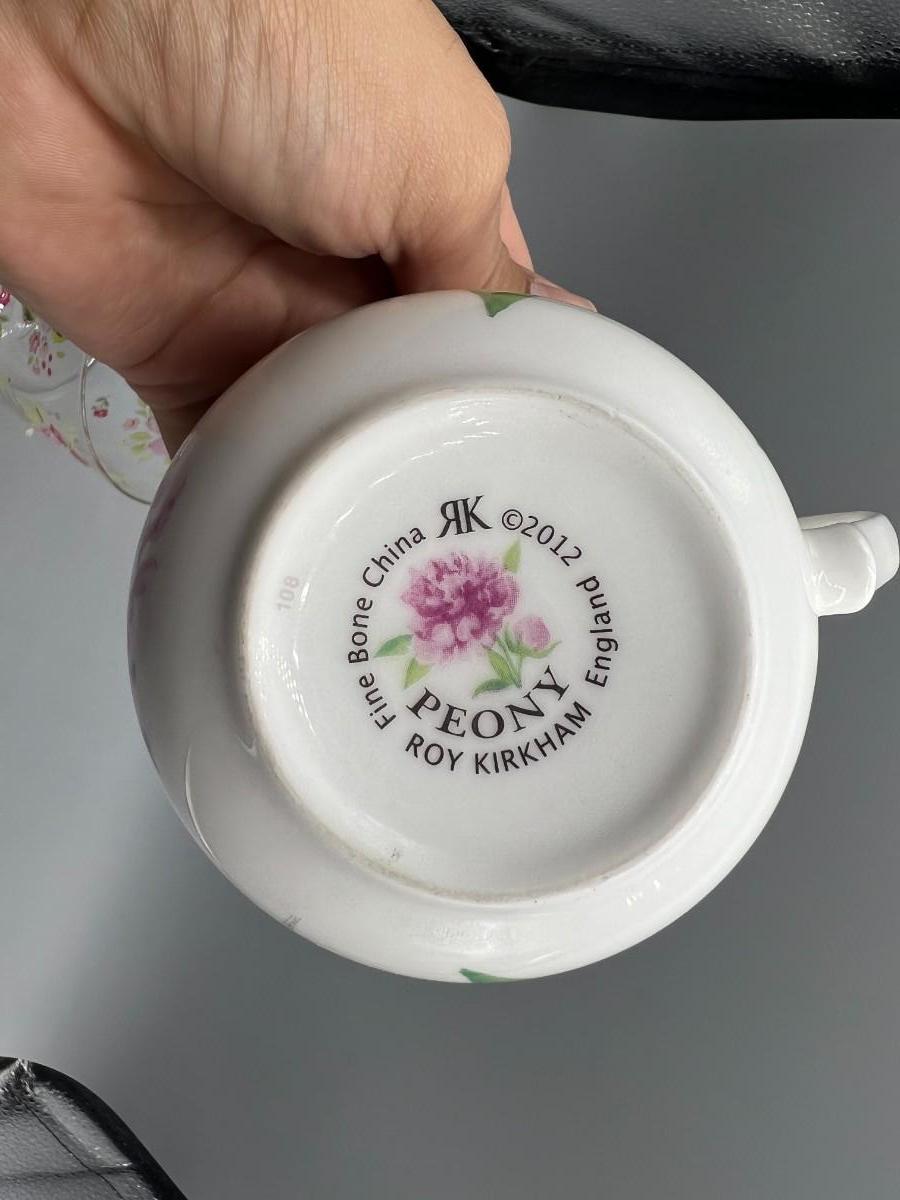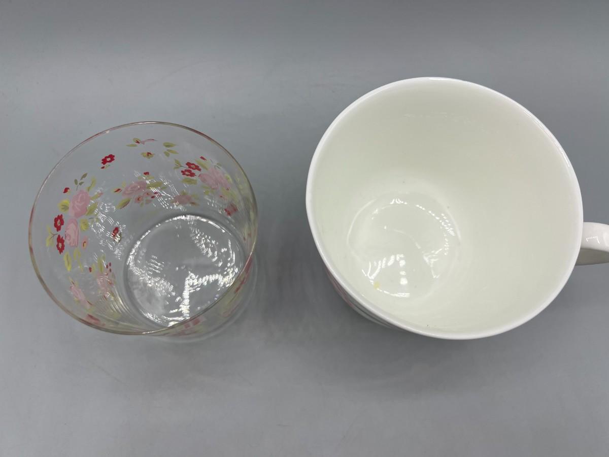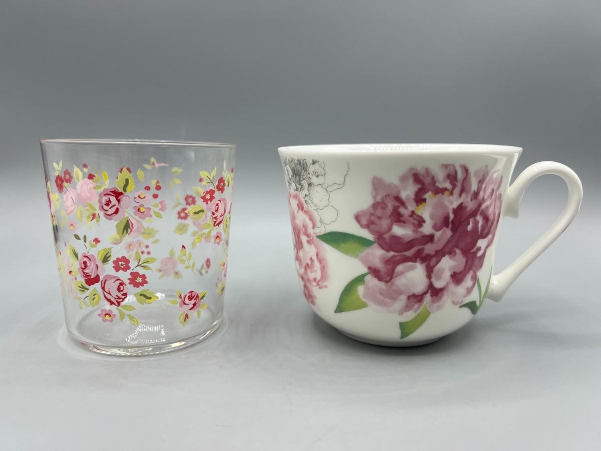 Pair of Floral Drinking Cups Floral Fine Bone China Peony Mug & Glass Cup