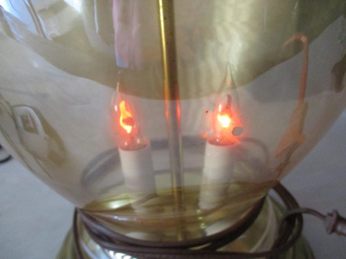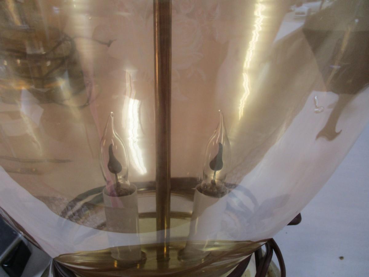 Pair Of Floral Etched Glass Table Lamp Iridescent