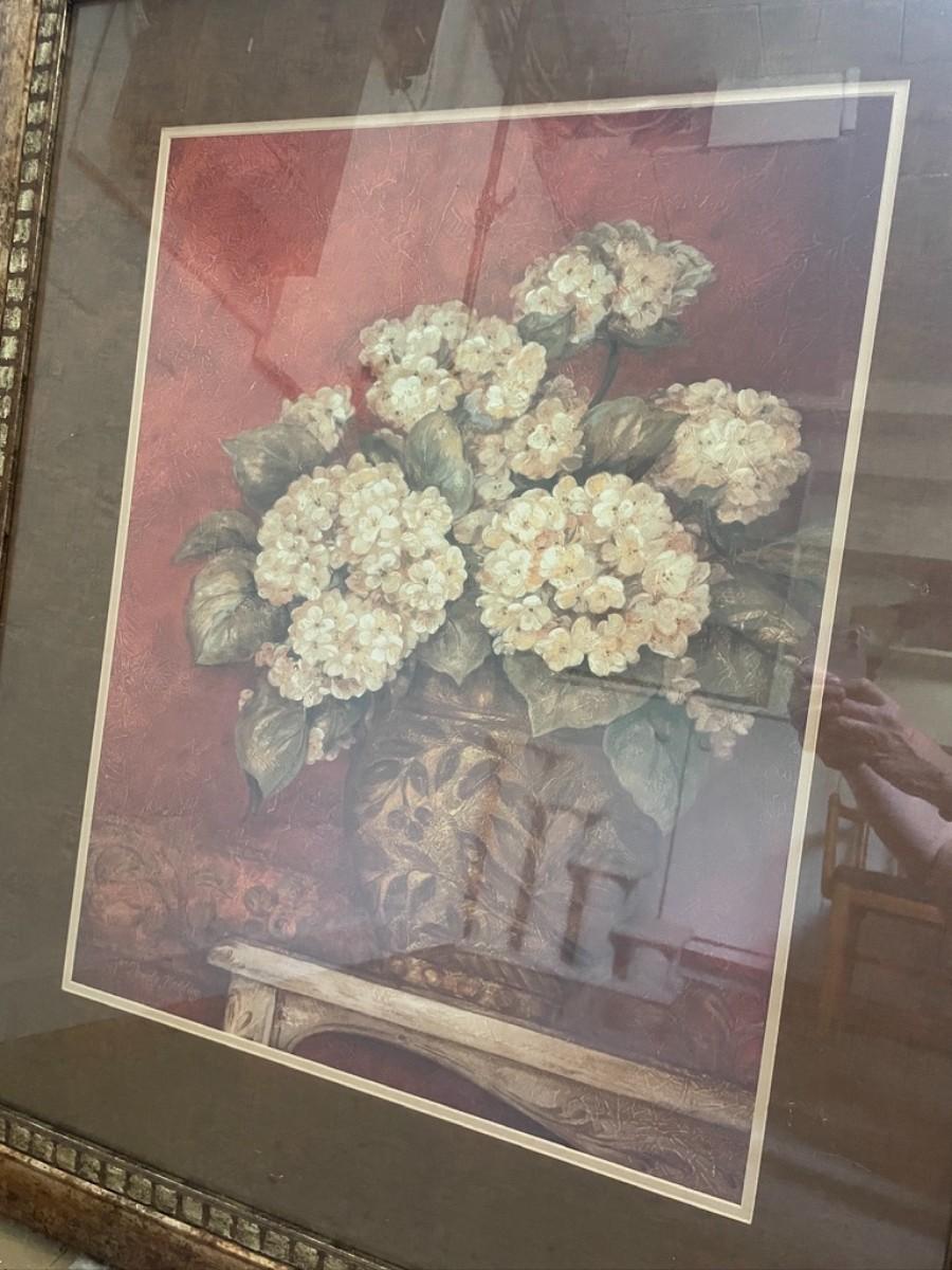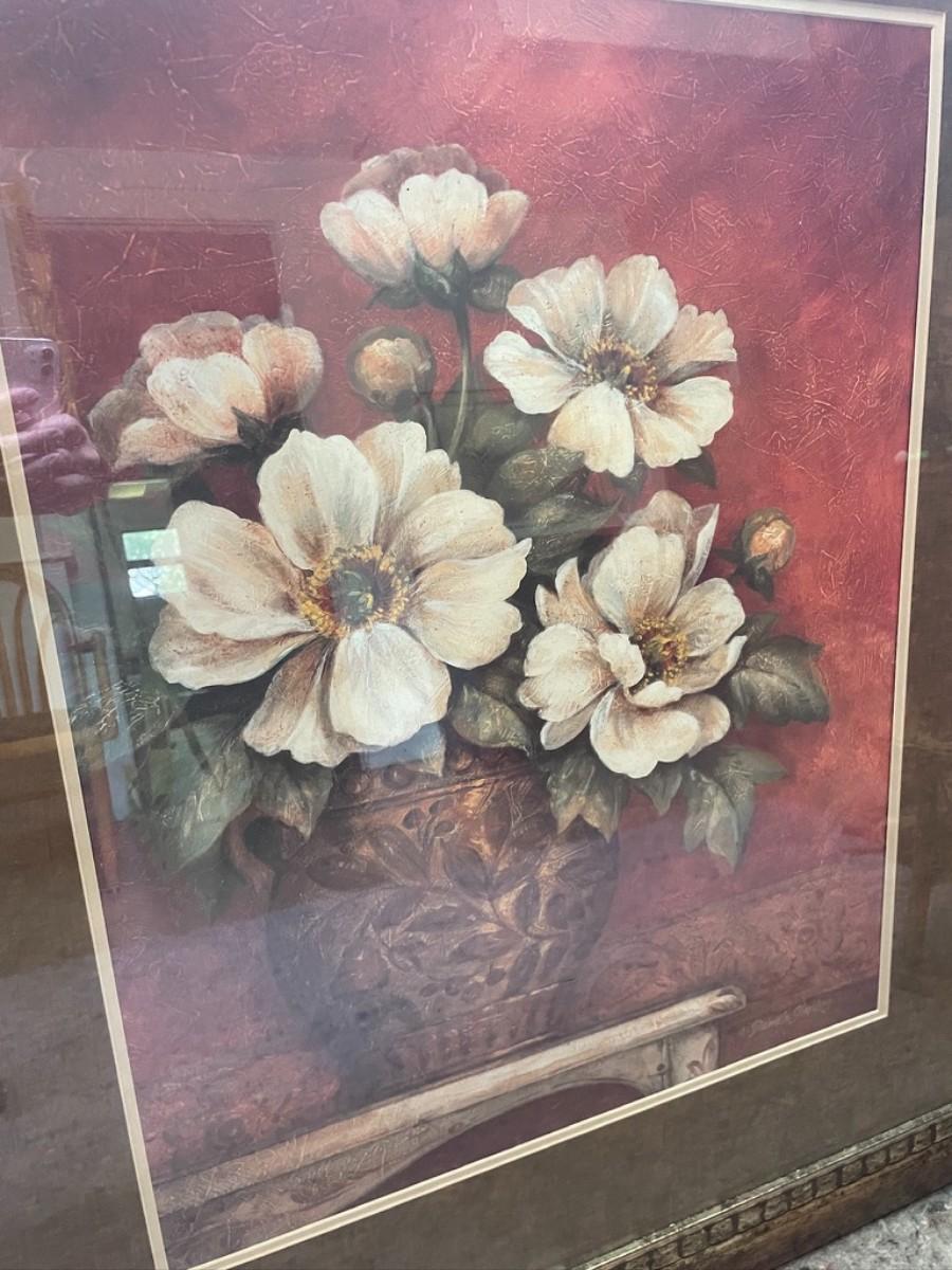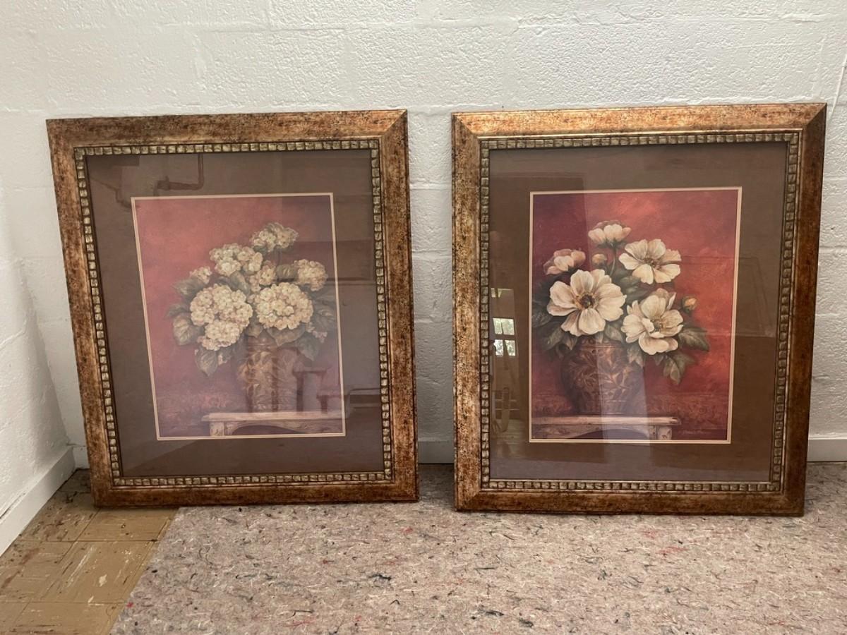 Pair of Flower prints in Golden Foil Frame . BY Pamela Gladding