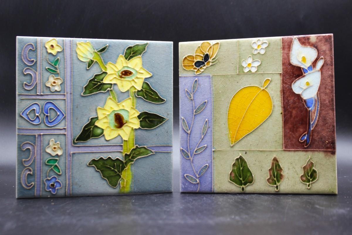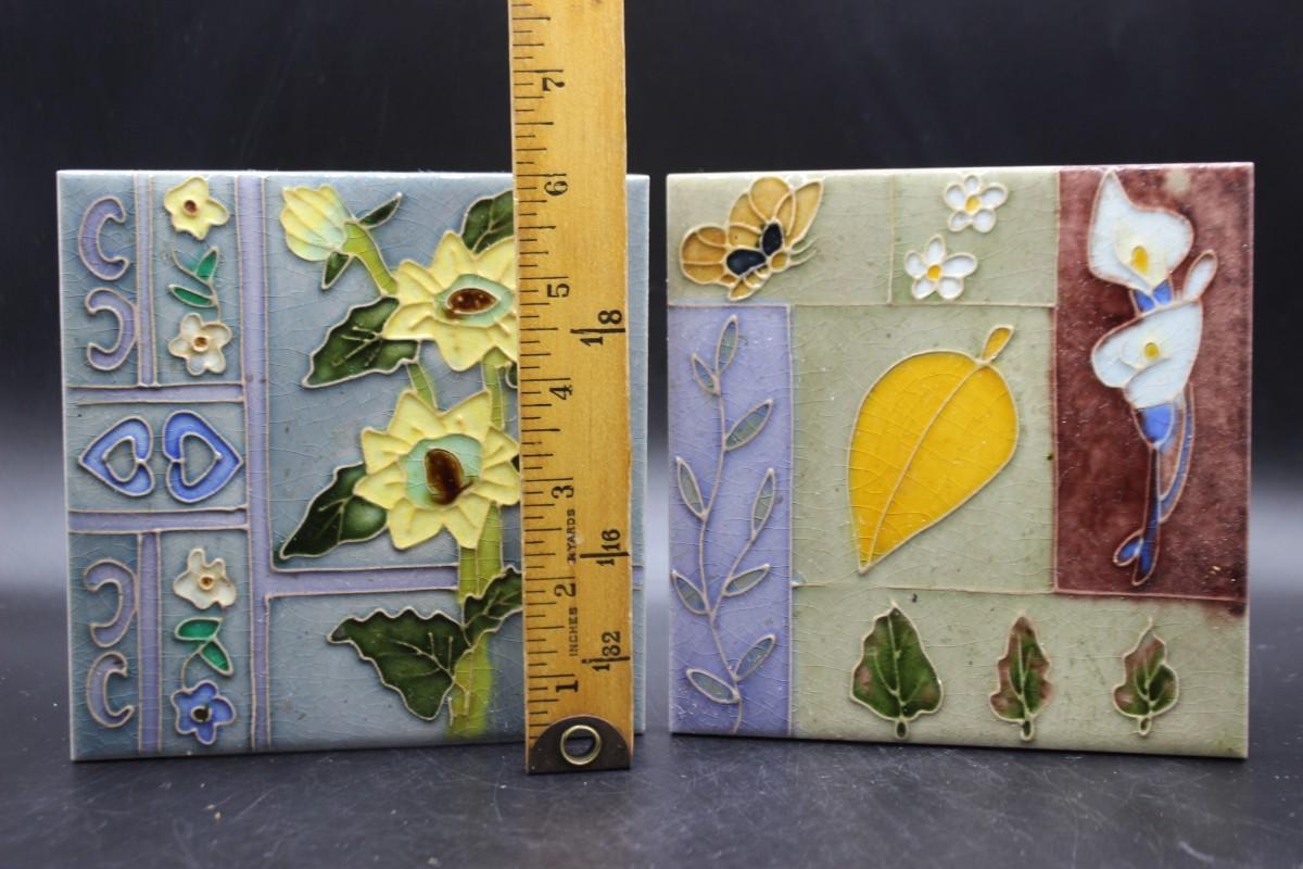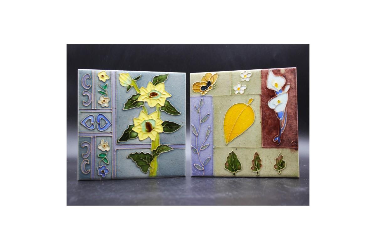 Pair of Flower Spring and Fall Decorative Art Tiles