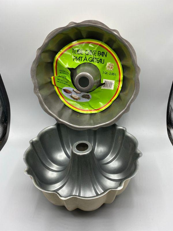 Pair of fluted tube cake pans. Great for any occasion cake. One is new unused, the other is lightly used, in good condition.