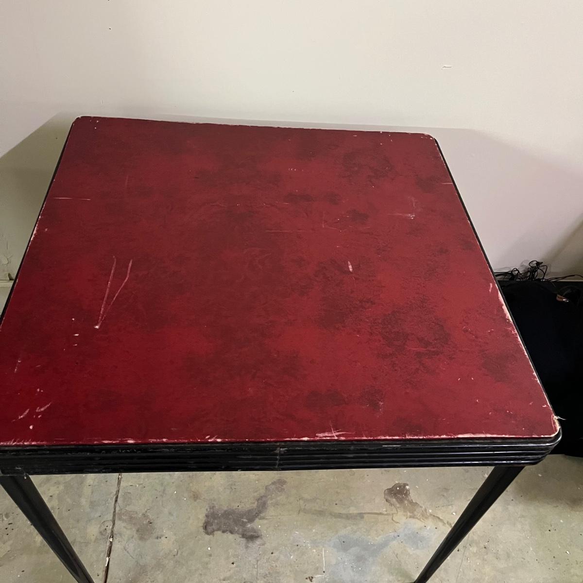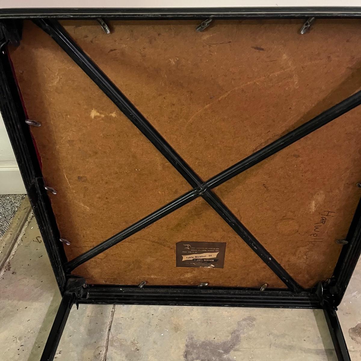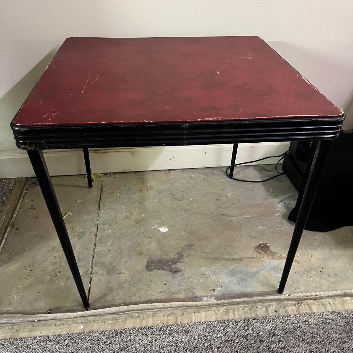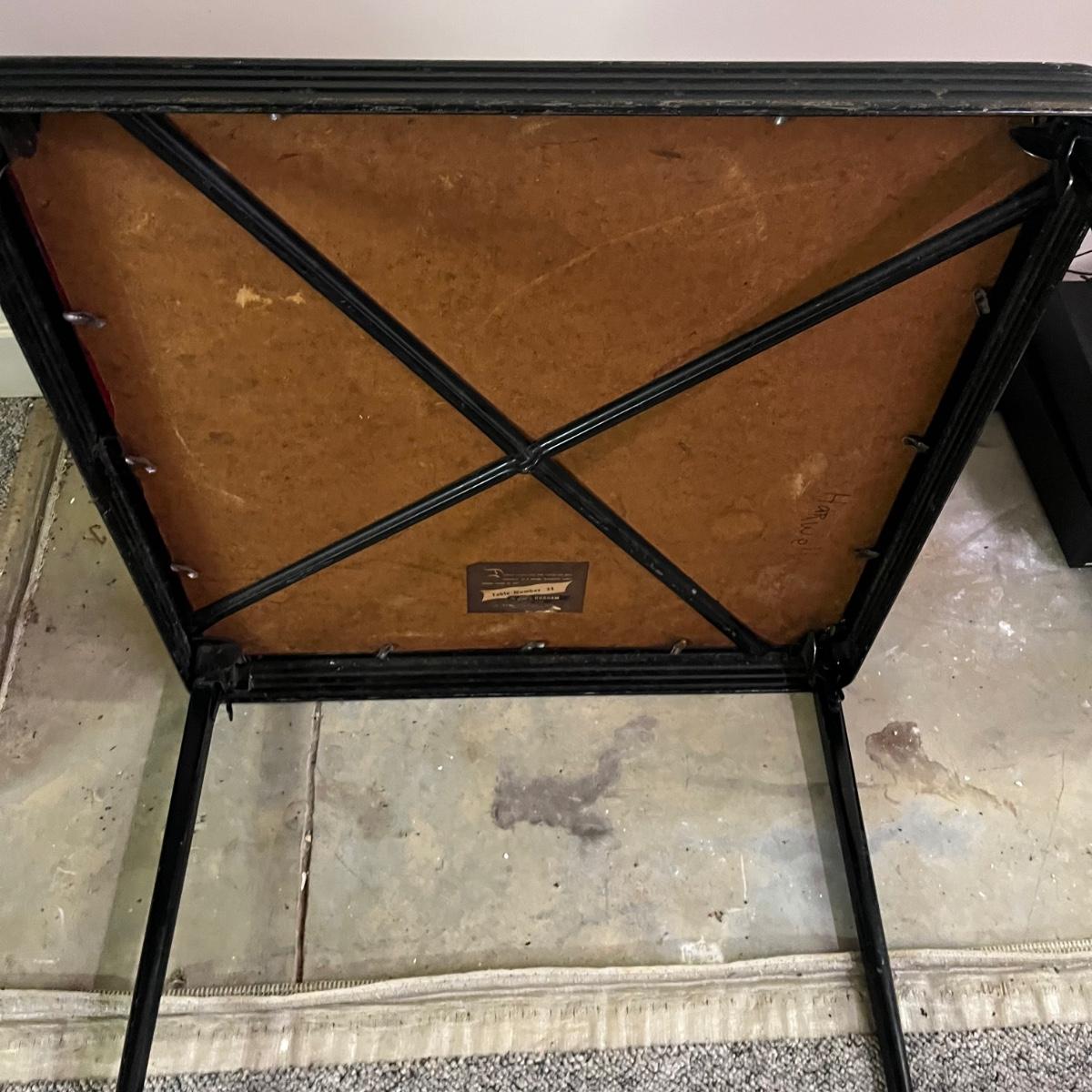 Lot includes a square folding table and a rectangular folding table that measures 20” x 48” x 28.5”. Both have minor wear and tear, see images.