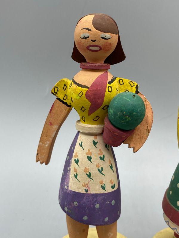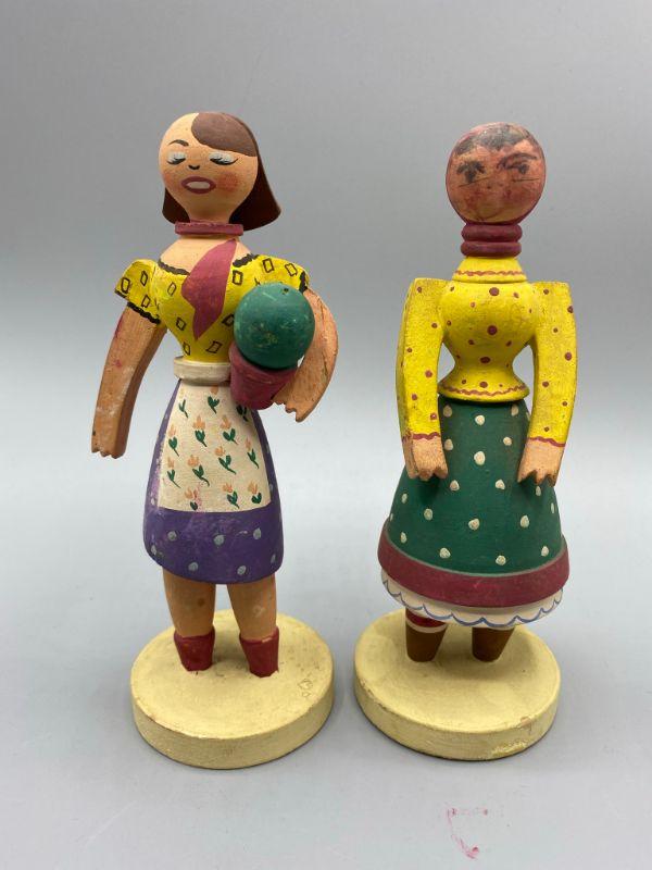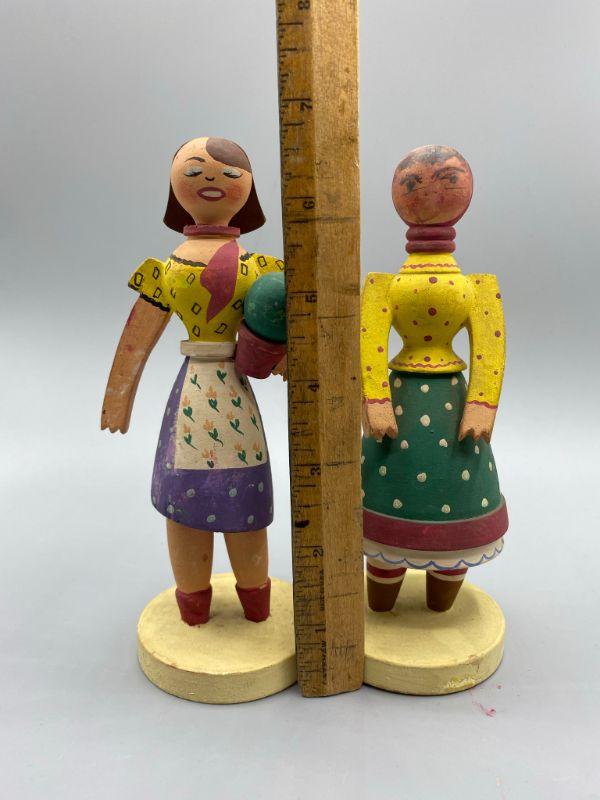 Pair of Folk Art Painted Wood Lady Figurines YD#011-1120-00099