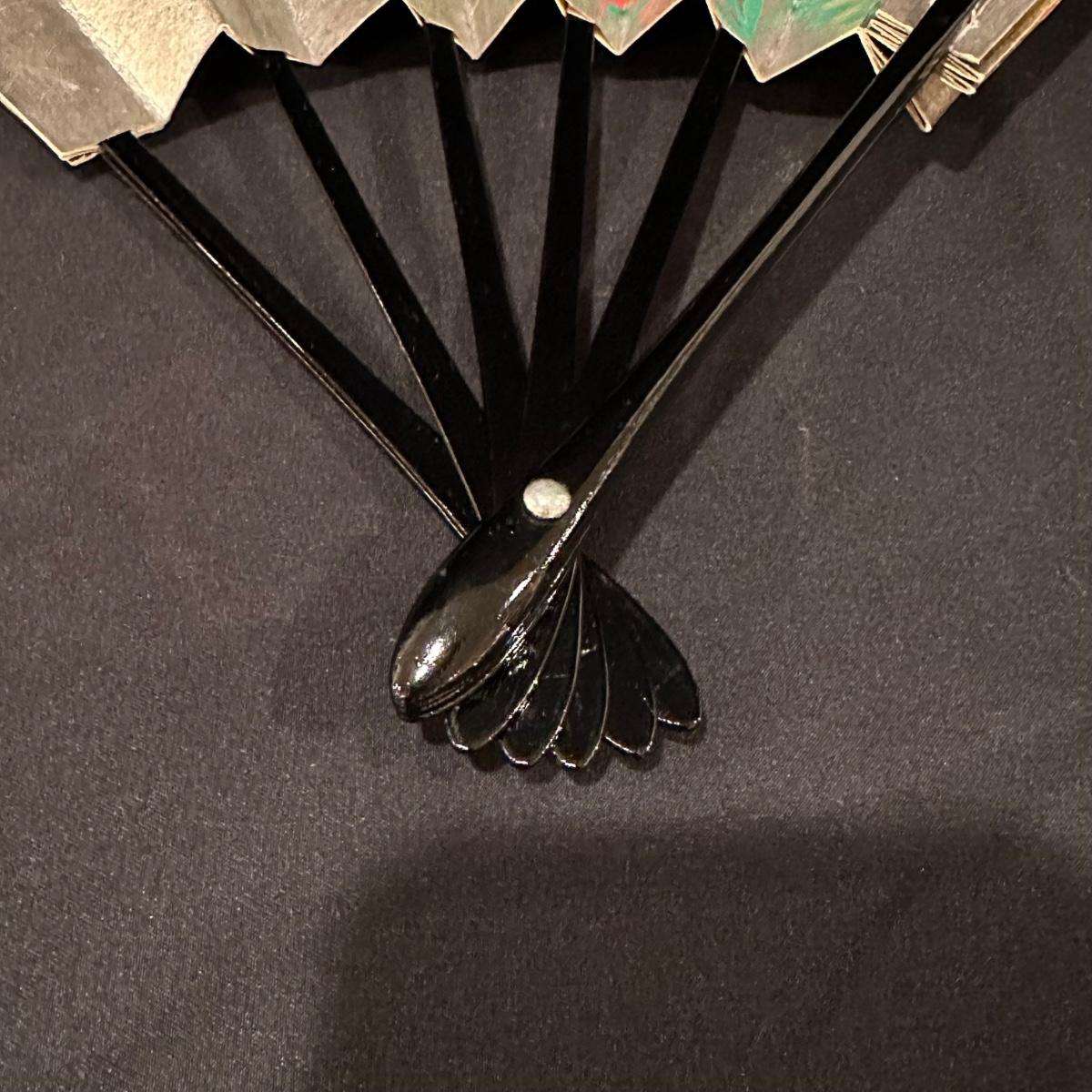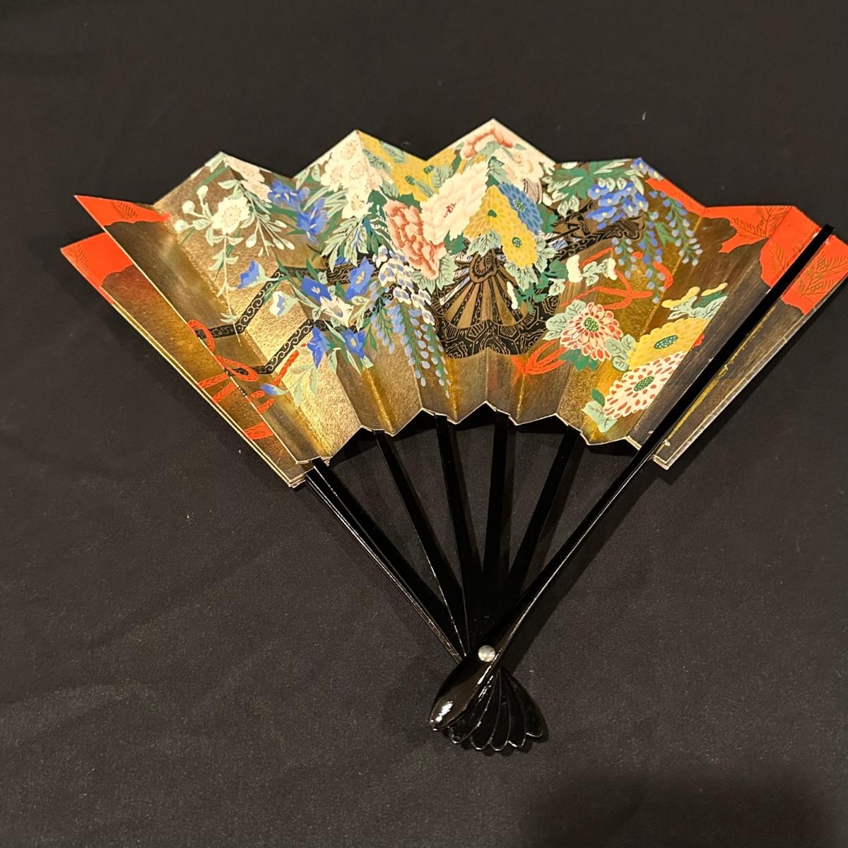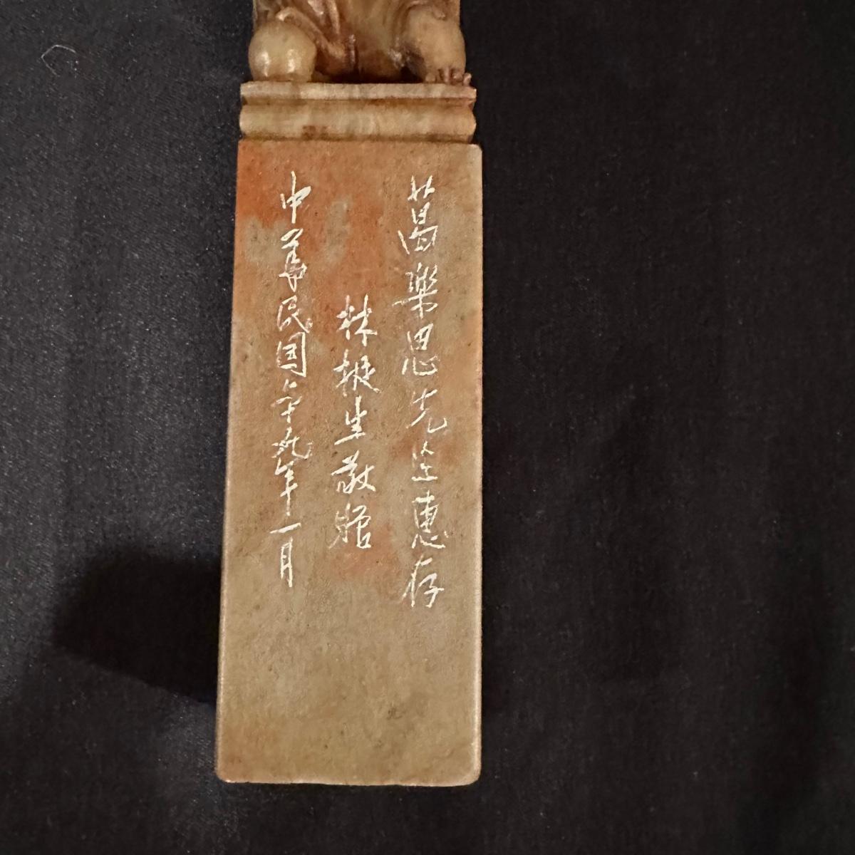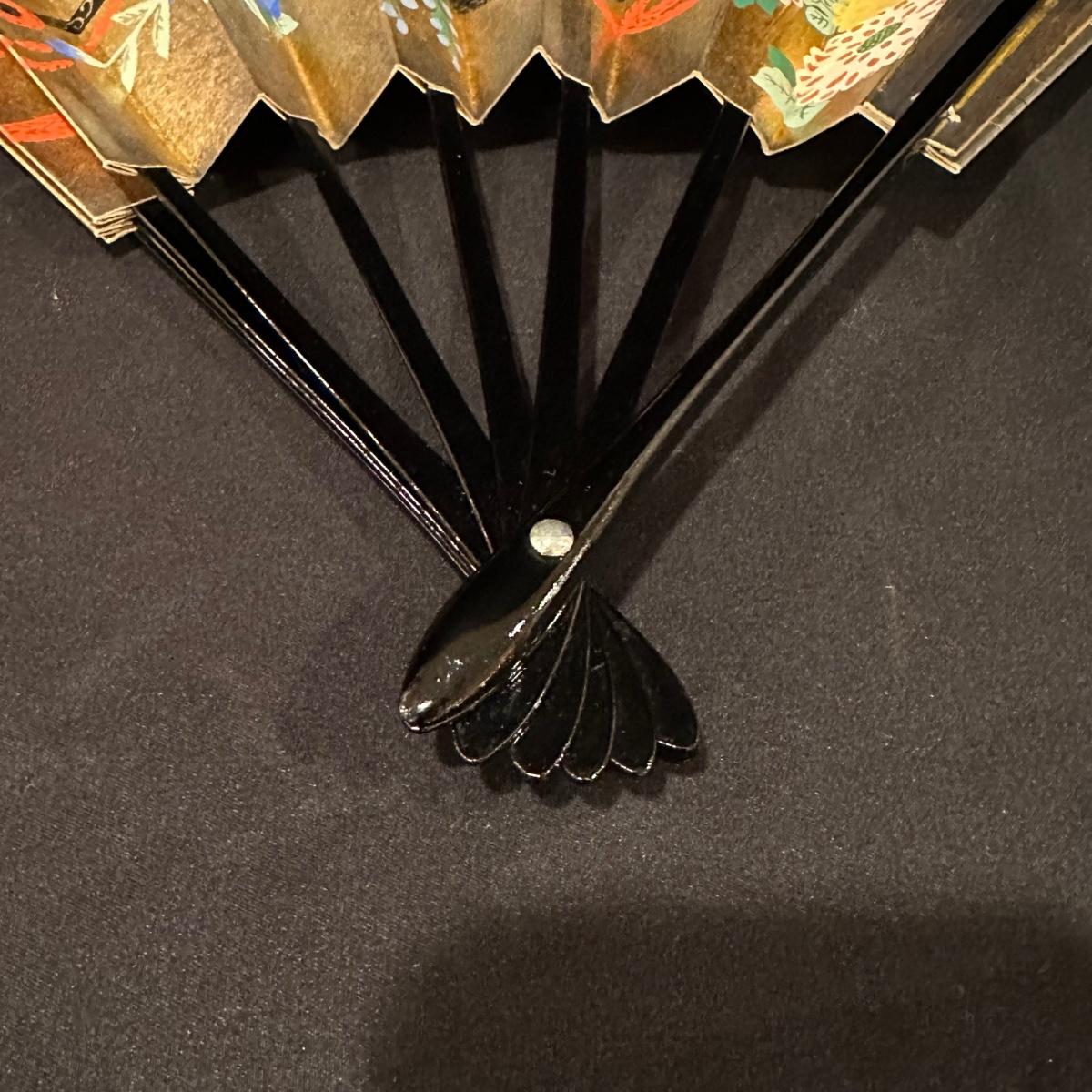 Pair of soapstone Foo Dogs that measures 1" x 1" x 4.5” H. Ornate hand fan measures 11”H. Wooden stand not included. Shipping available.