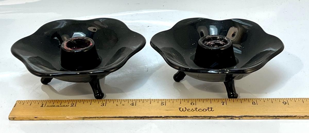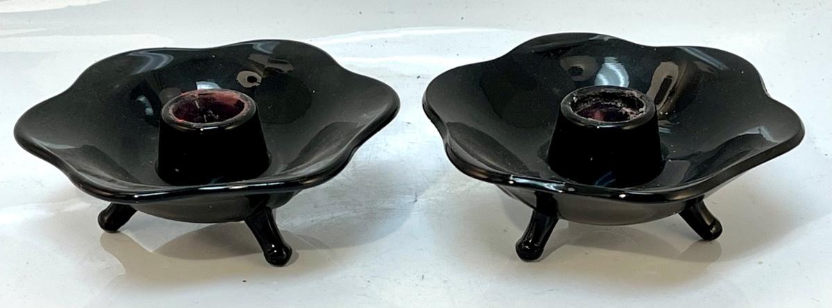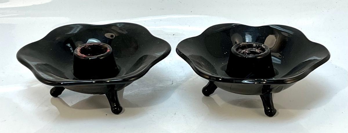 Pair of footed Black Candle holders