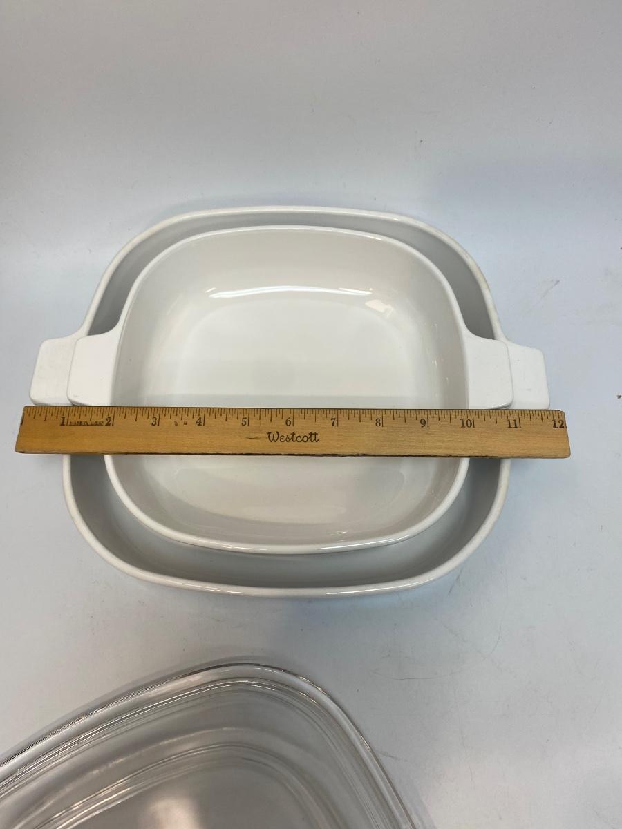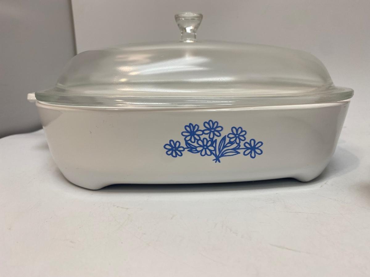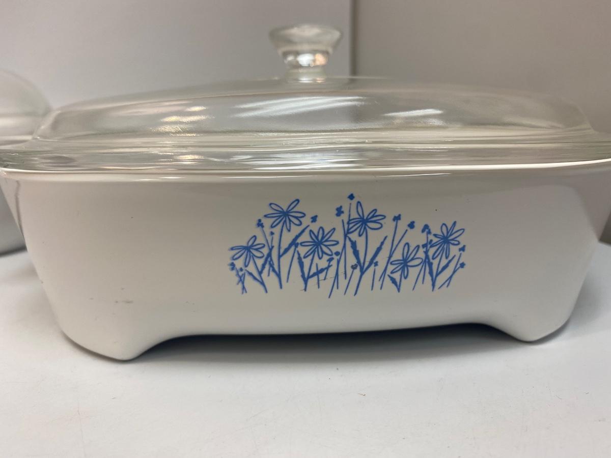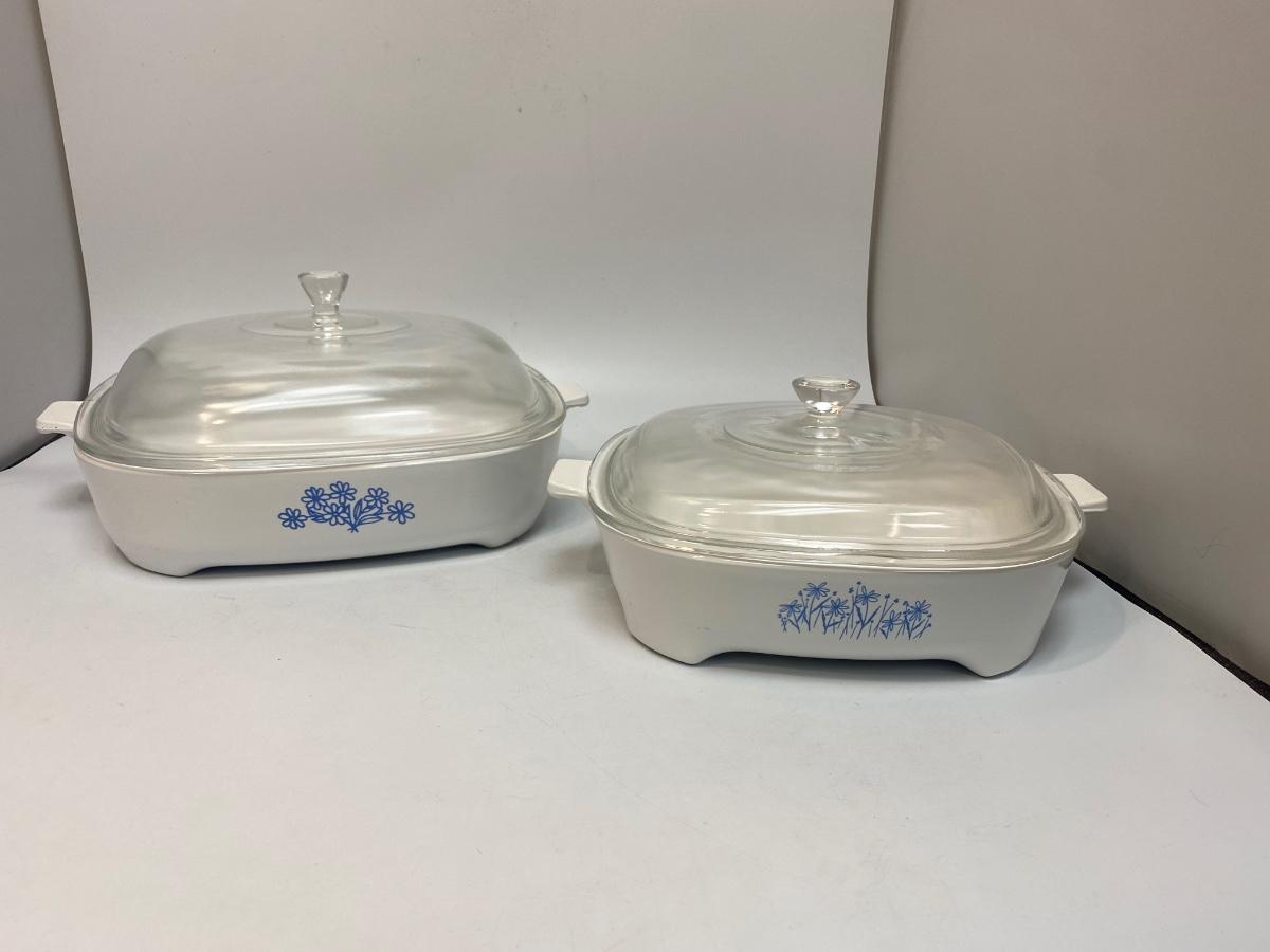 Pair of Footed Corning Ware Browning Dishes with Lids Floral Patterns