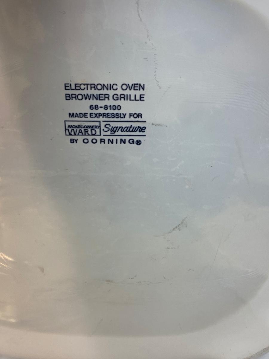 Pair of Footed Corning Ware Browning Dishes with Lids Floral Patterns. Both are made for microwave cooking/browning. Different blue floral patterns.