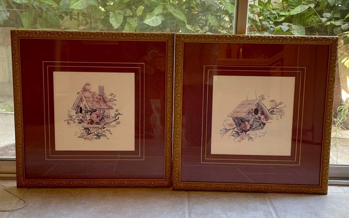Pair of Framed and Matted Birdhouse color Pencil Drawings - MANDATORY PICKUP 8-24-24 see below
