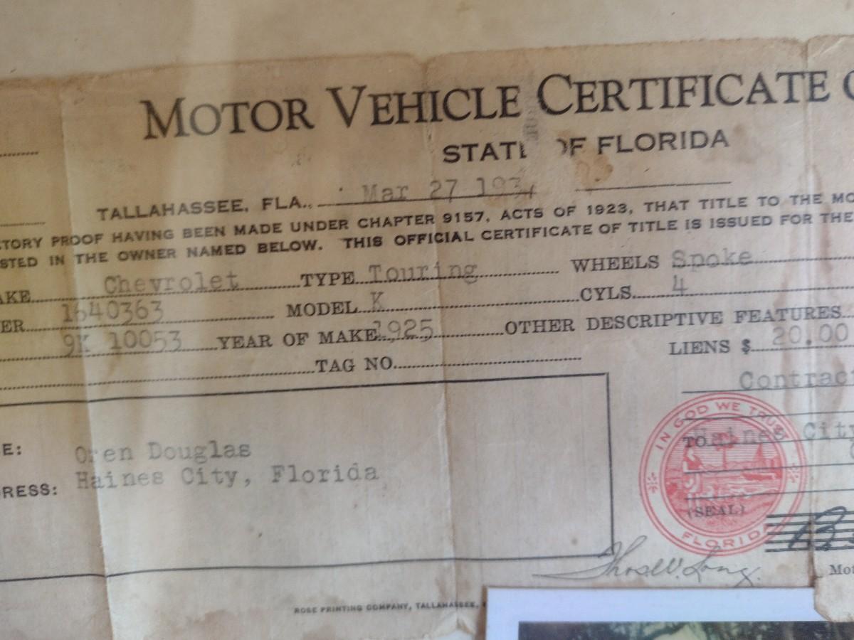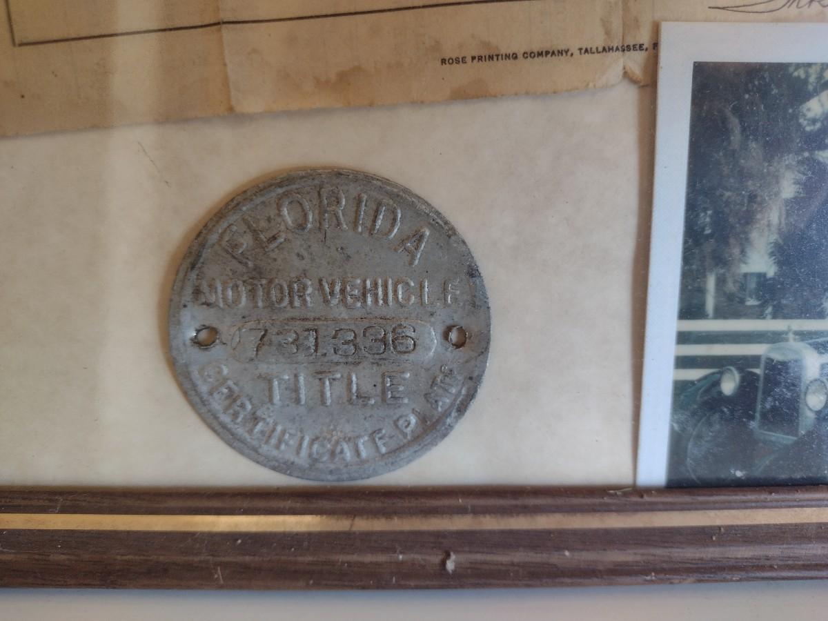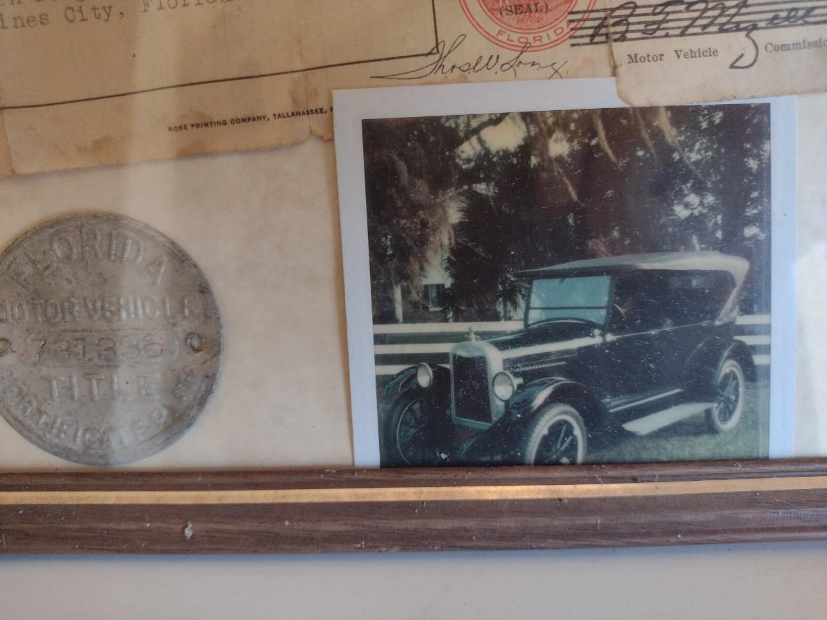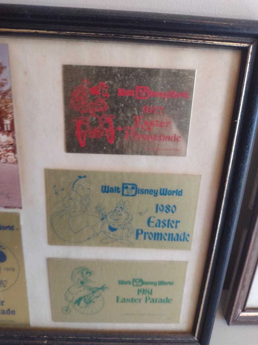 Pair of Framed Antique Car Registration and Medal Vehicle Identifier Tag and Disney Parade Memorabilia