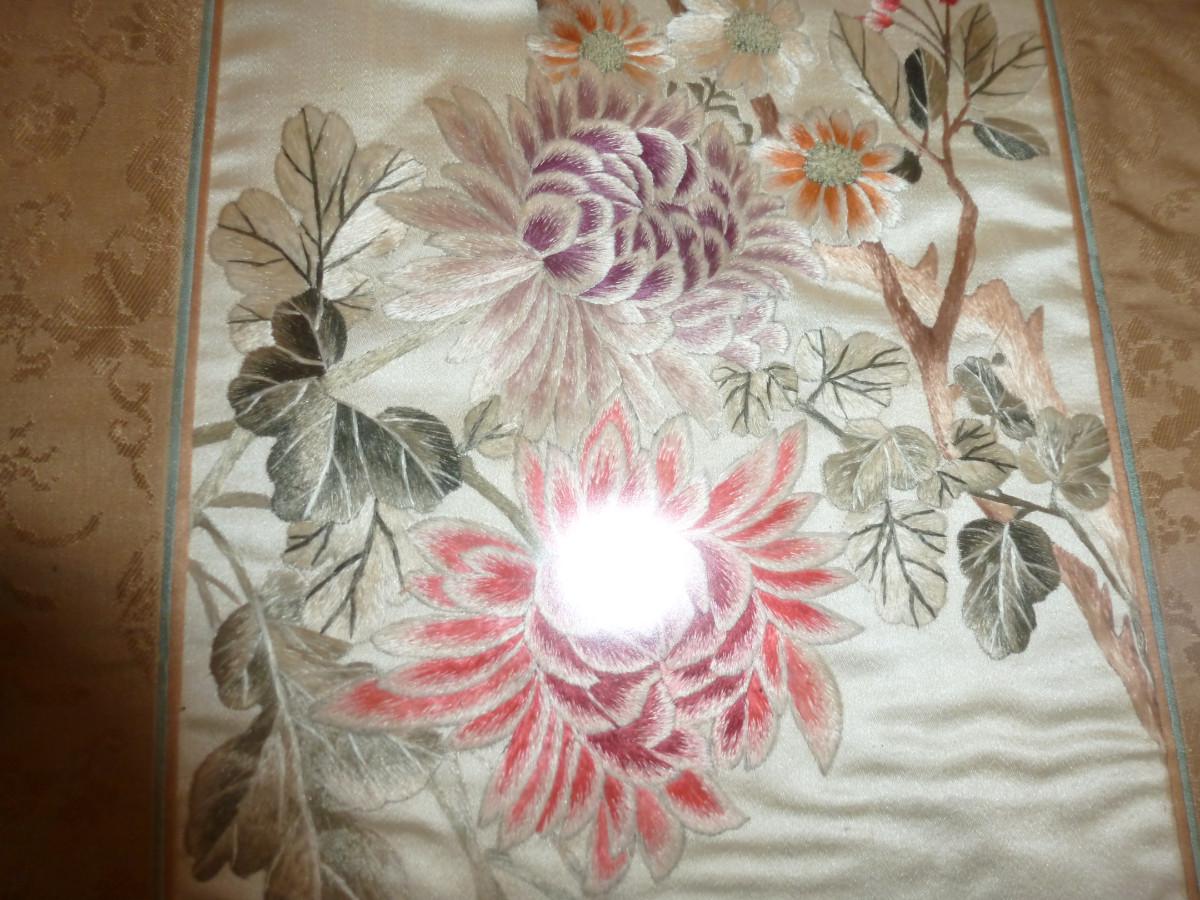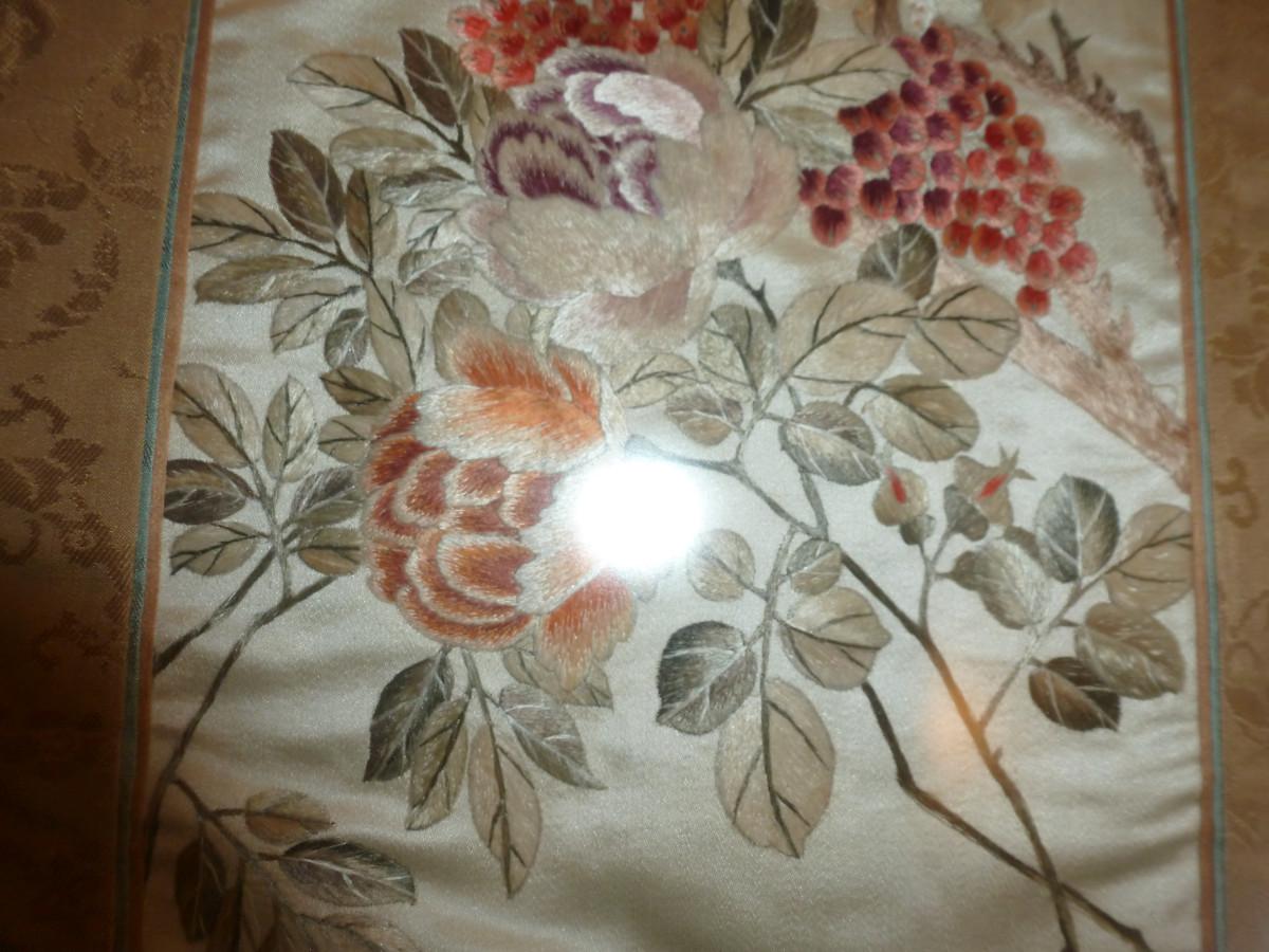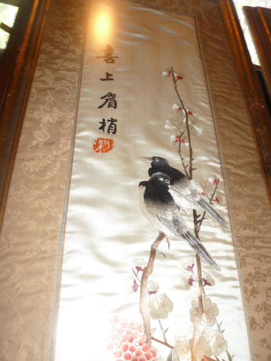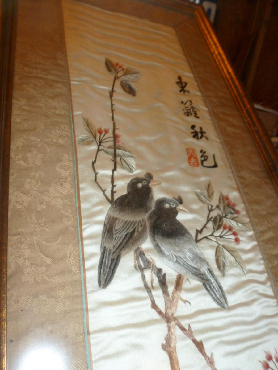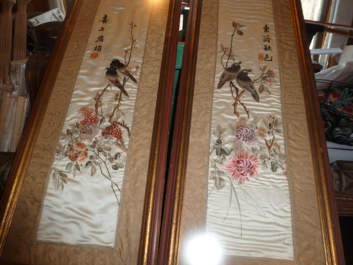 Pair of Framed Asian Art on Silk- Approx 36" x 13"