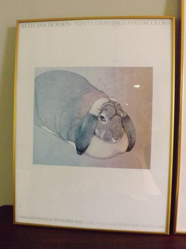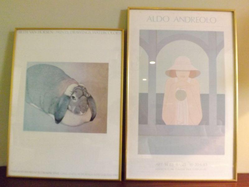 Framed Gallery posters for Beth Van Hoesen at Oakland Museum Retrospective, Oakland, 1980 and Aldo Andreolo at Galerie Paul Ludin, Basel., 1983 Frame-19x25.75" and 19x29.5" **Please read Terms and Conditions before placing a bid. Pick up is by appoitment the following week in Mantua, New Jersey. Shipping is available at buyer's expense. All sales are final. All sales are as is, where is. Please review all photos. Any props included in photos are not included in listing. All measurements are approximate.