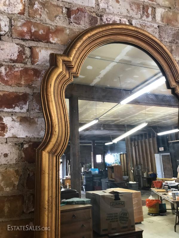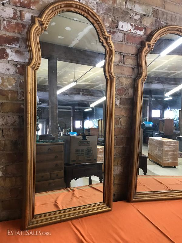 Large pair of gold framed mirrors, resin frame heavy glass, 50" by 22". Auction is for both mirrors.