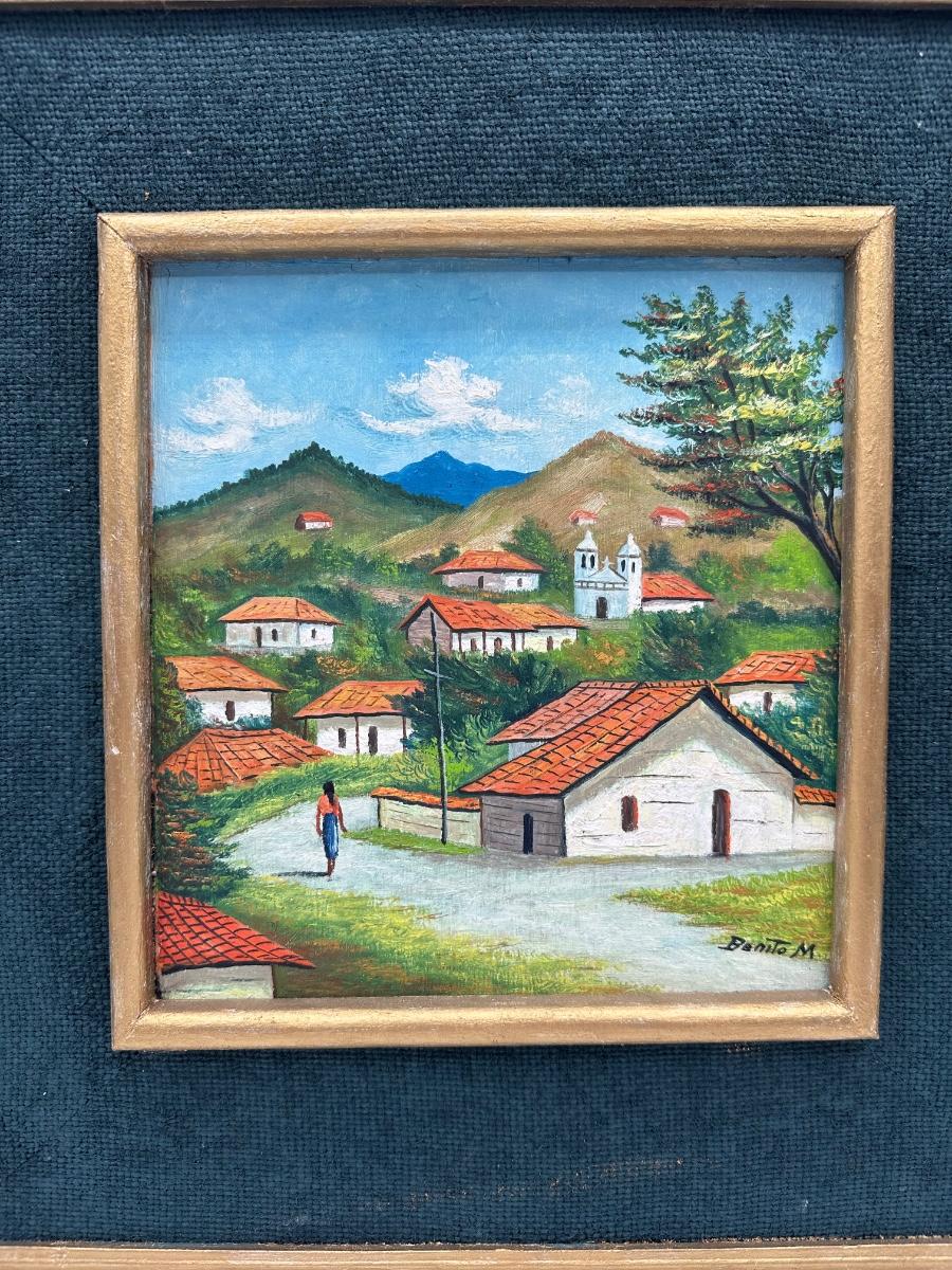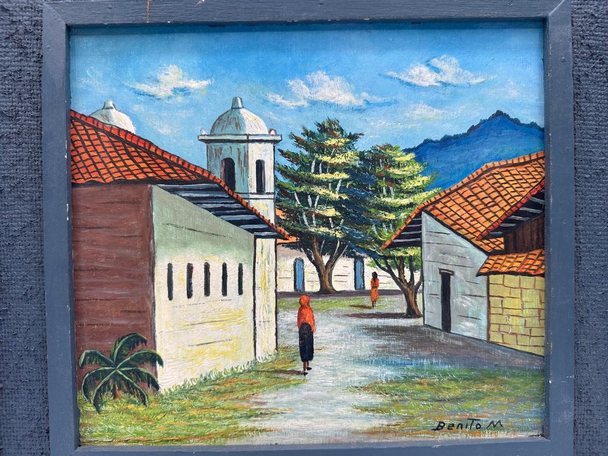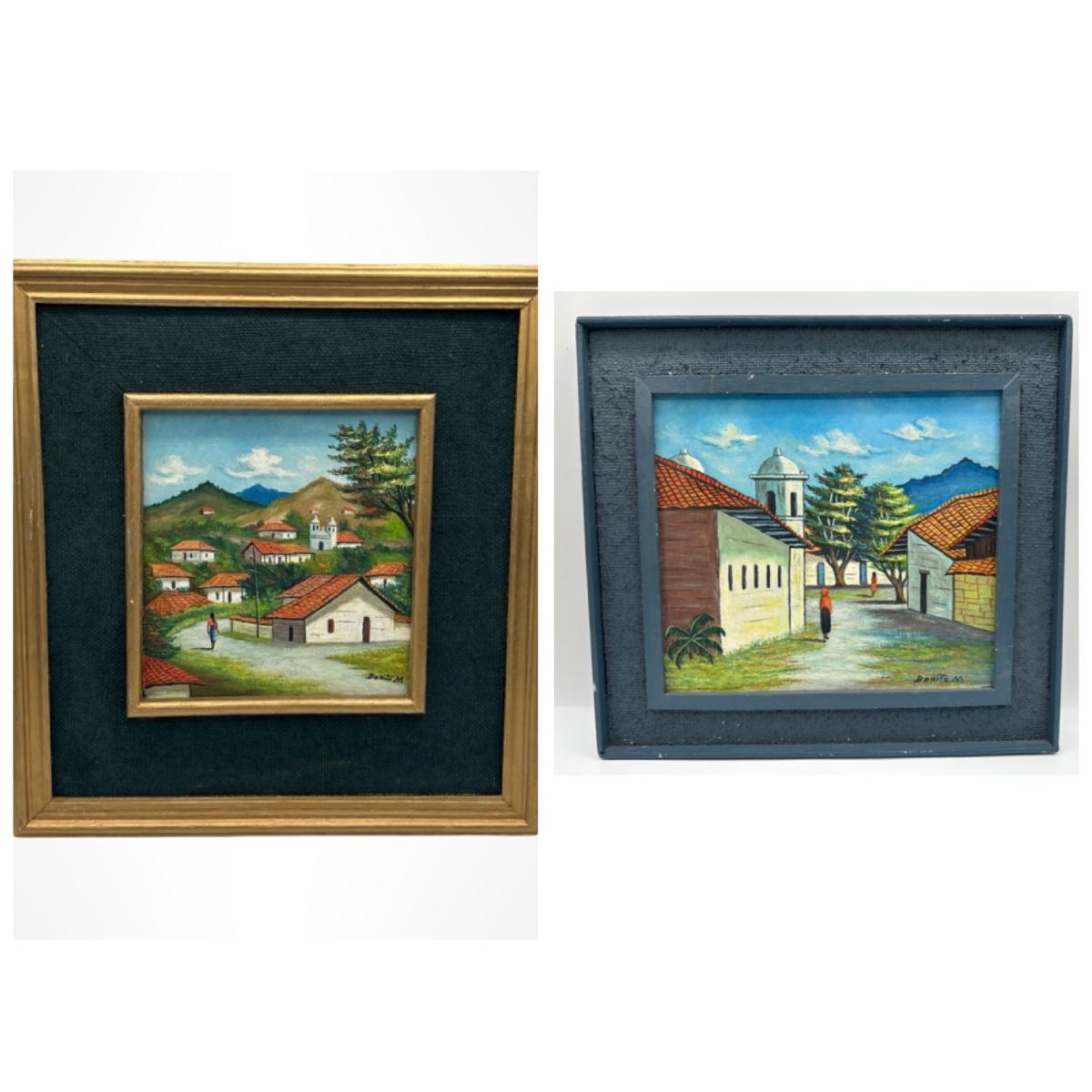 Pair of Framed Honduran Village Scene Oil Paintings on Board