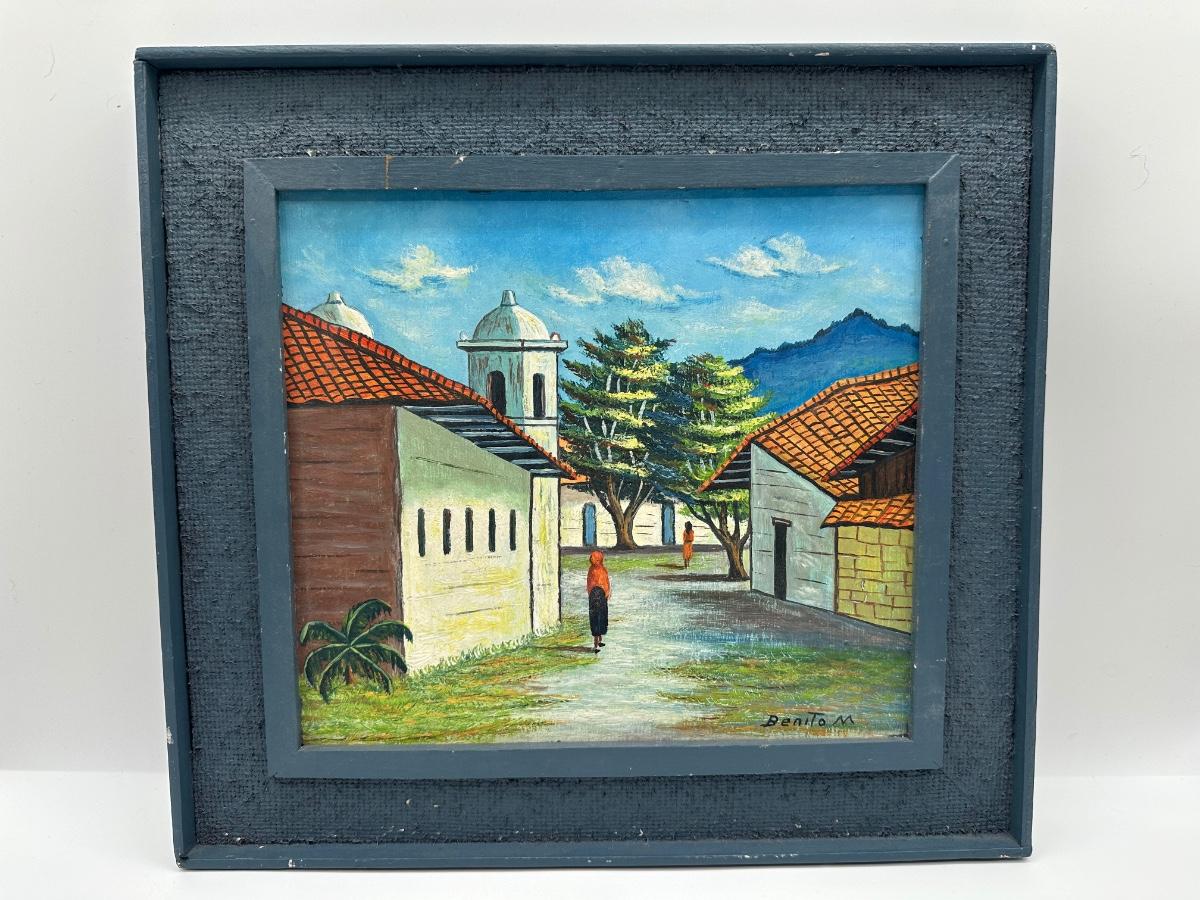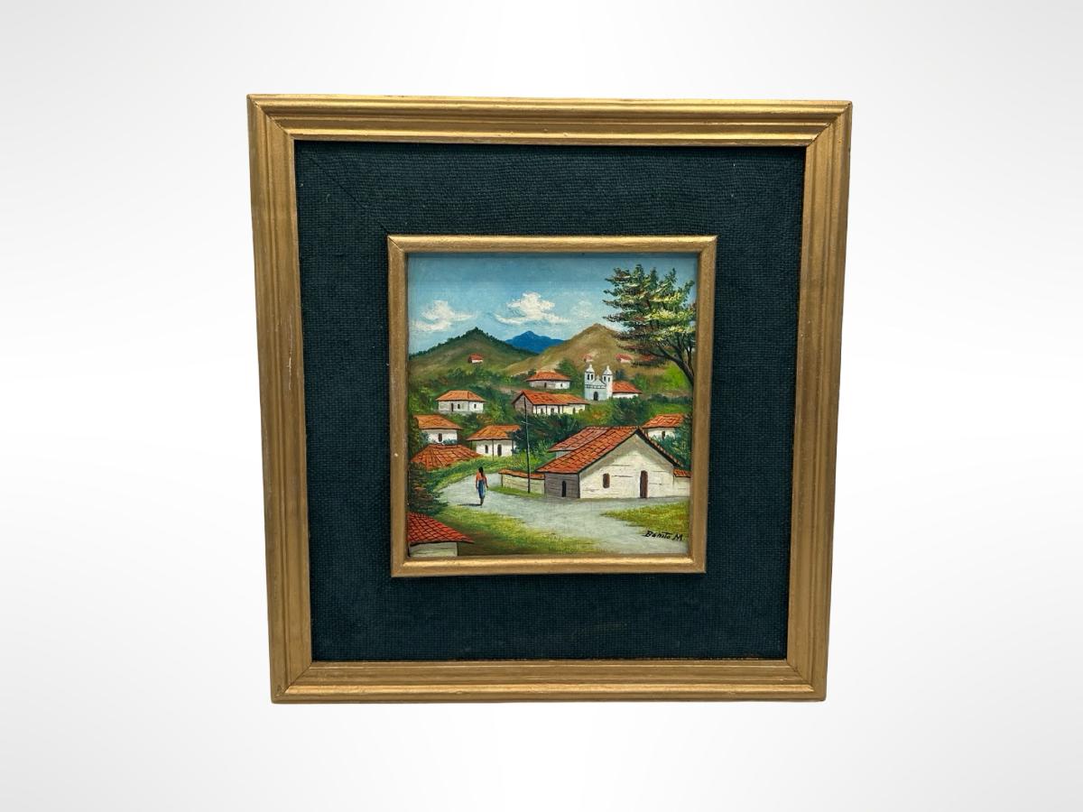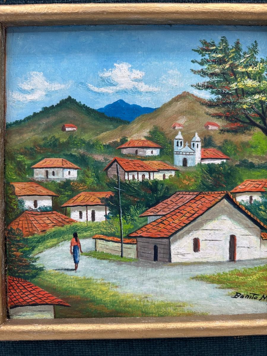 Pair of Framed Honduran Village Scene Oil Paintings on Board