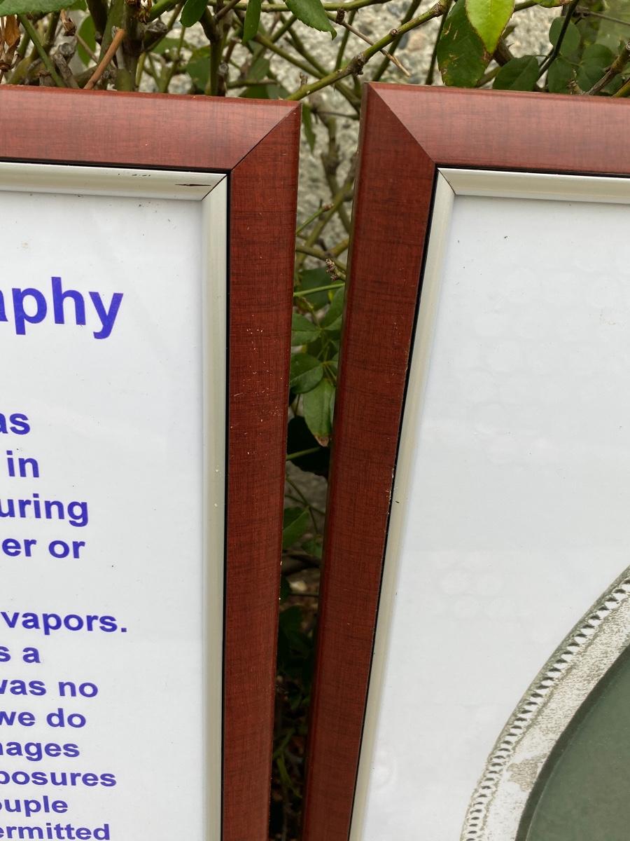 Pair of Framed Informational Posters about the Era of Daguerreotype Photography, there is no damage to the frames or the protective glass and is in good useable condition. Great for reusing as poster frames. Check pictures for more details and for sizing.