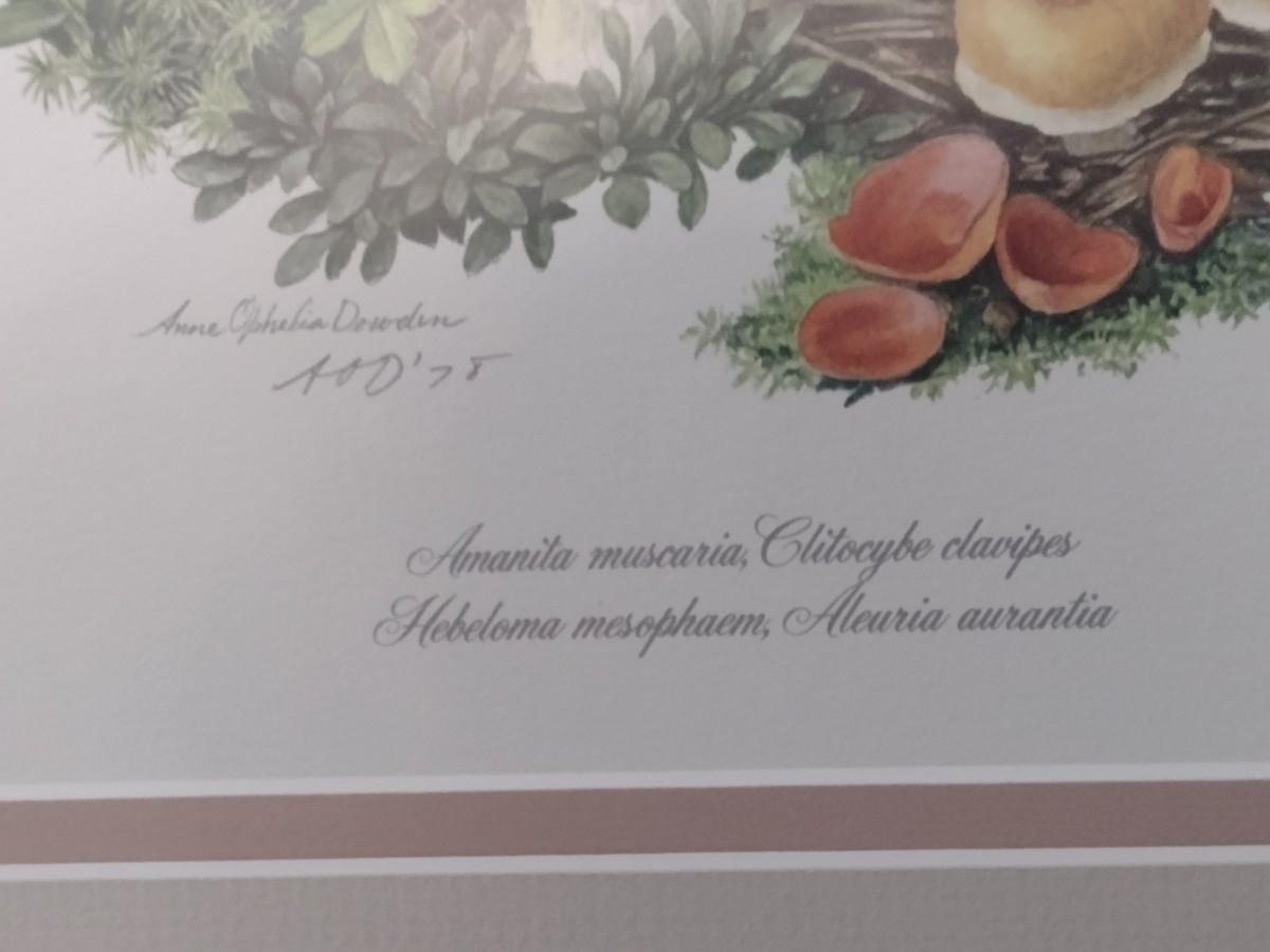 Pair of Framed Mushroom Prints by Anne Ophelia Dowden