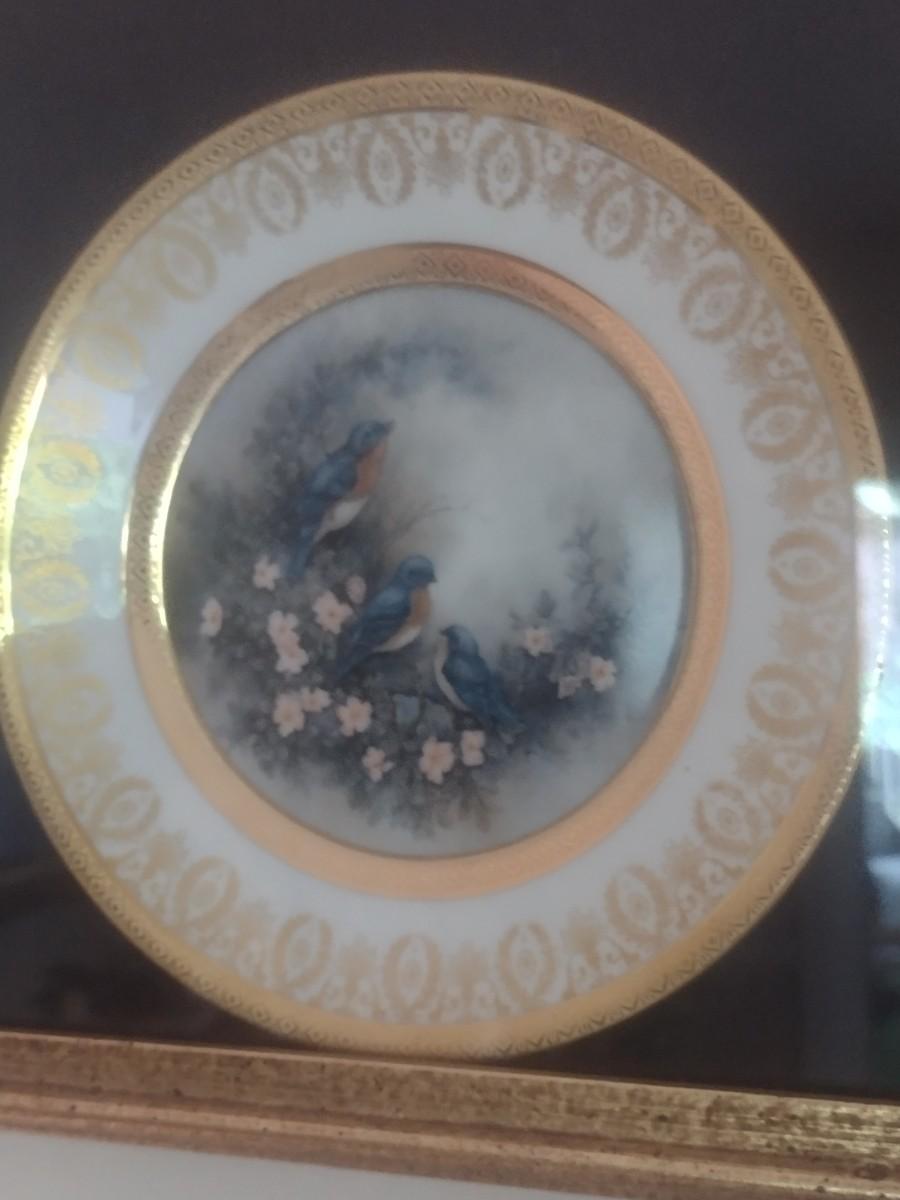 Pair of Framed Porcelain Hand Painted Wild Bird Plates Choice B