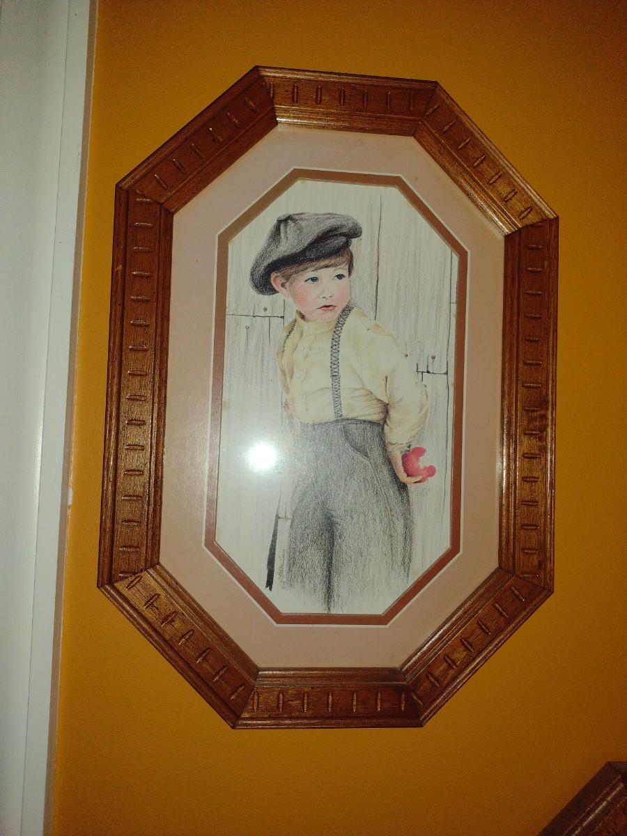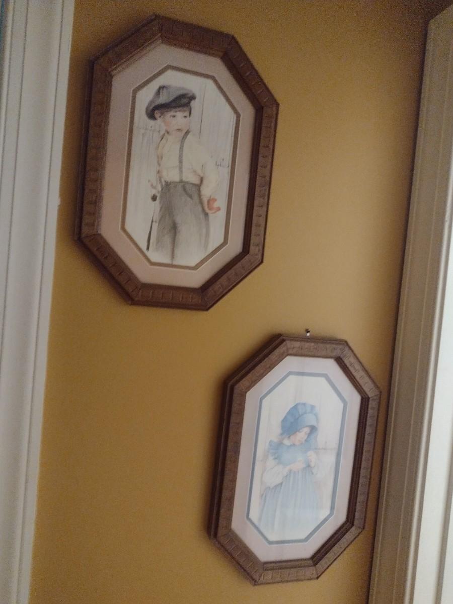 Pair of Framed Prints Boy and Girl Dressed in Vintage Clothing