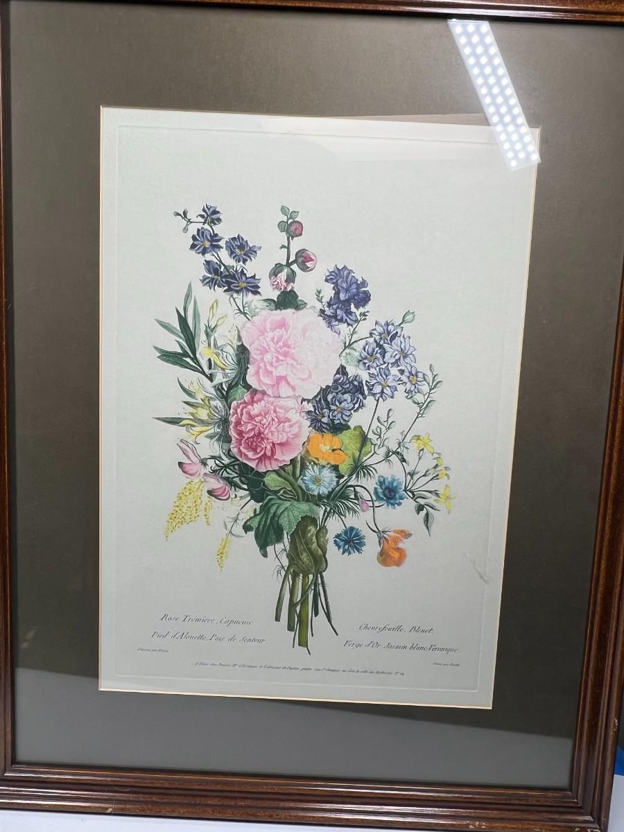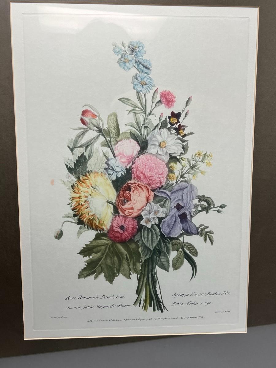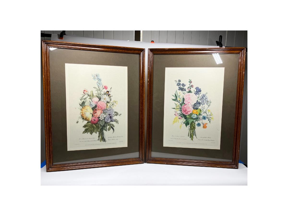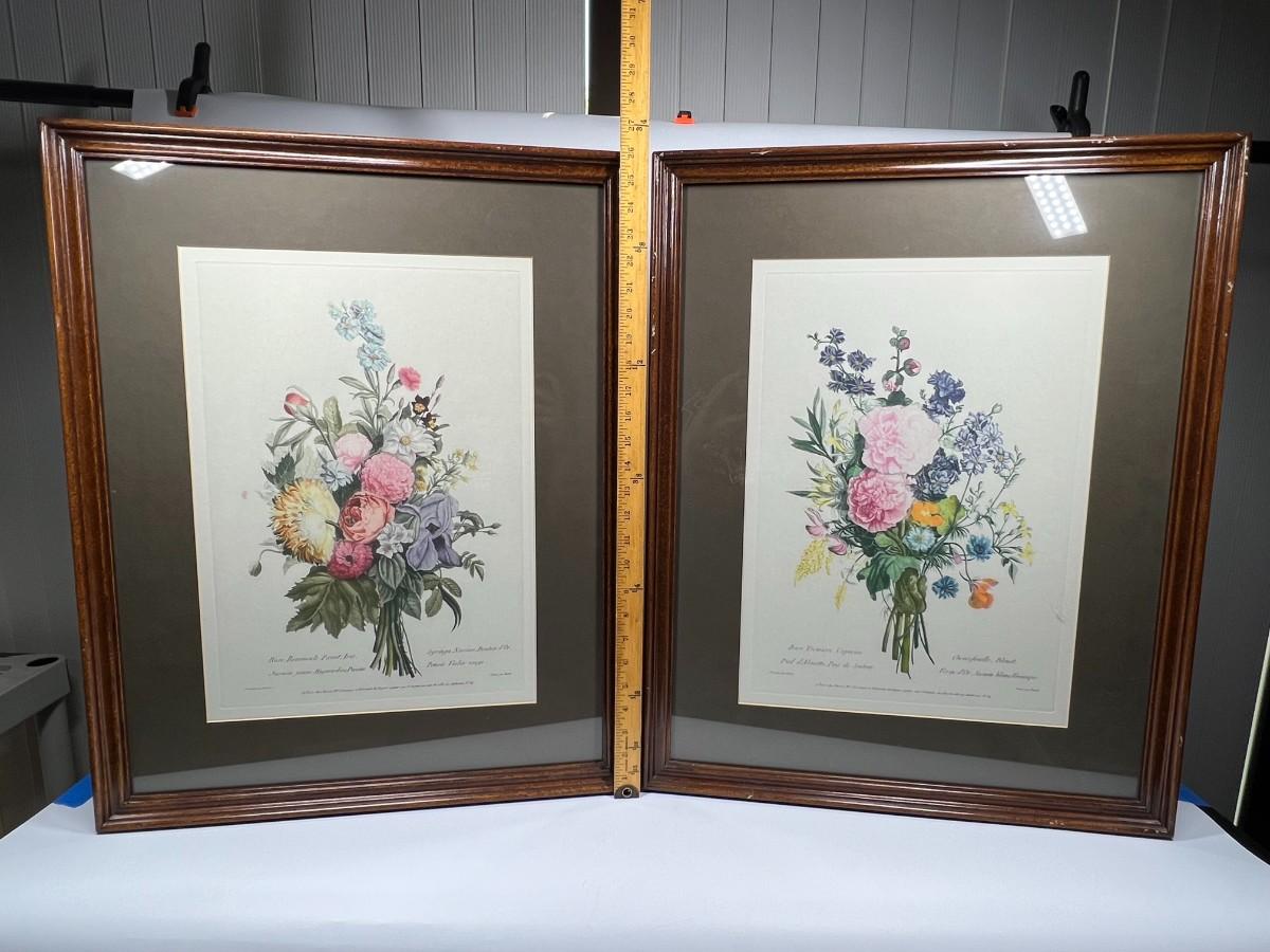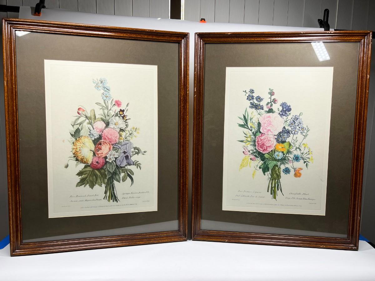 Pair of Framed Prints of Colorful Bouquet of Flowers, there are some minor scratches on the wood frame, but there is no significant damage and is in good displayable condition. Check pictures for more details and for sizing.