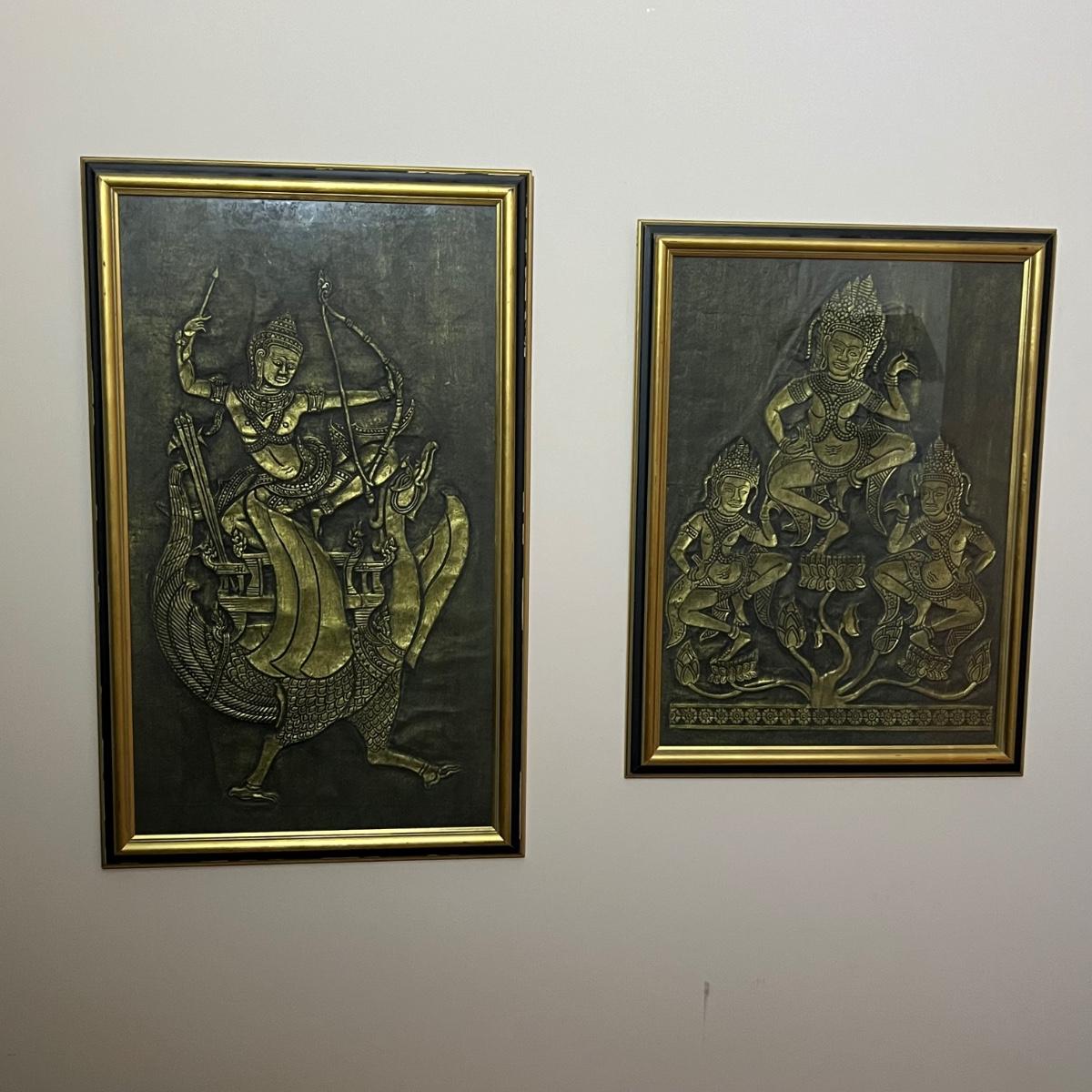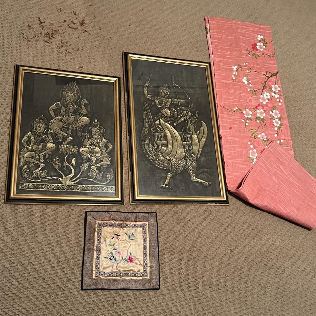 Pair of Framed Rubbings, Silk Panel & Door Curtain (GB2-RG)