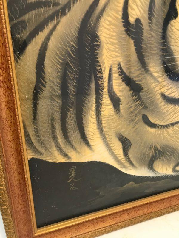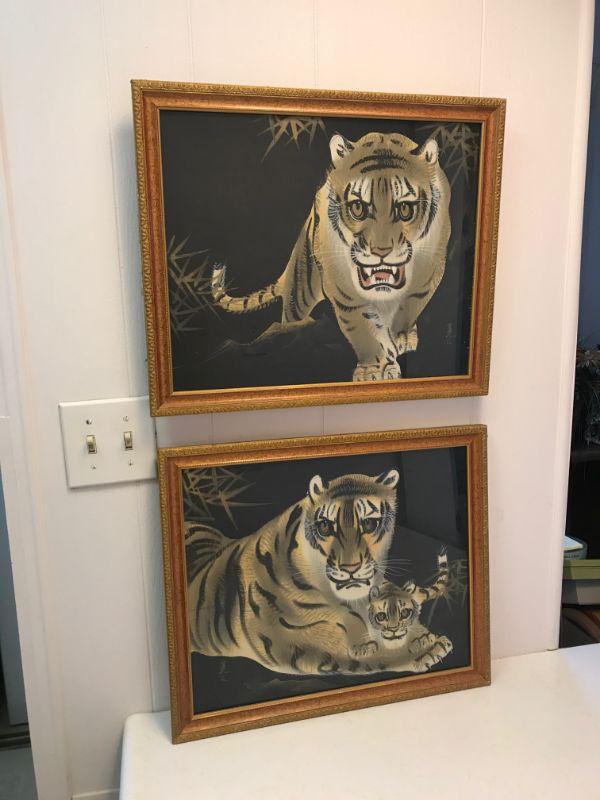 Pair of Framed Silk Tiger Paintings (2)