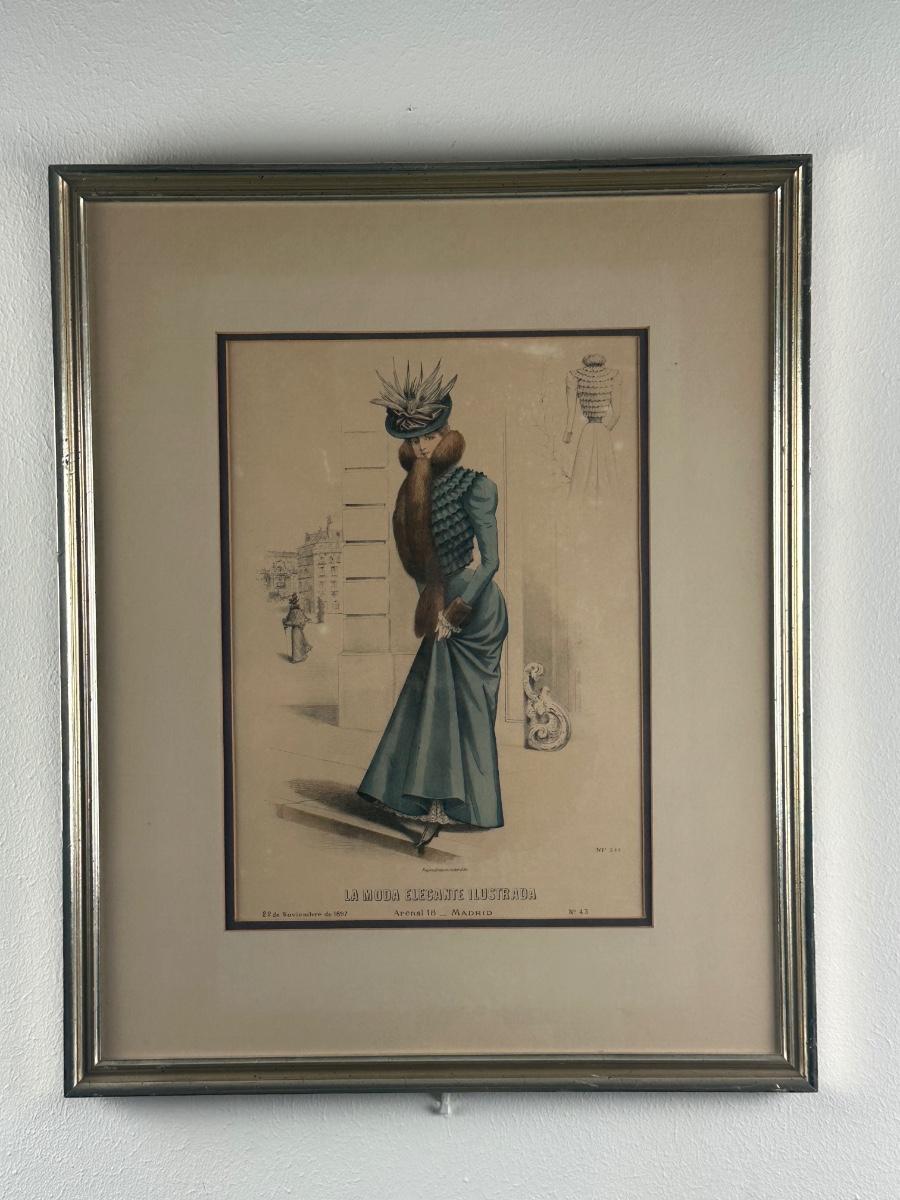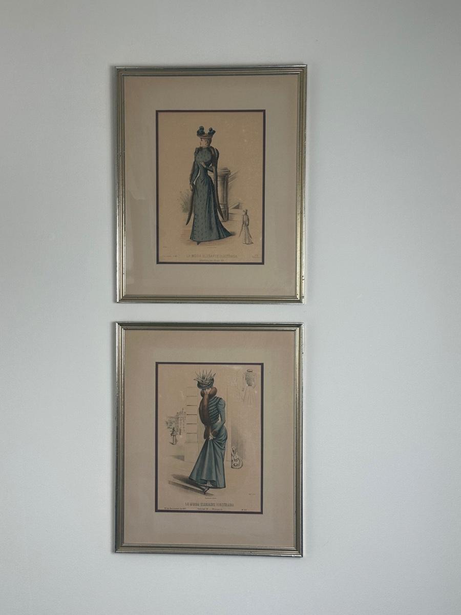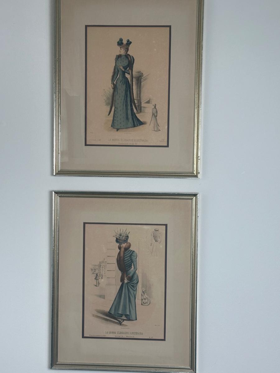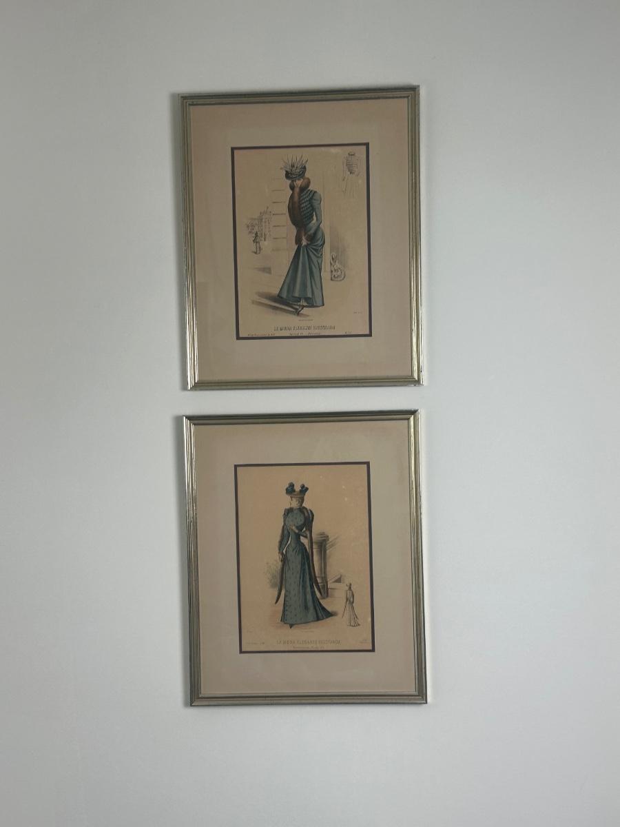 Pair of Framed Victorian Dress Illustrations from 1890s